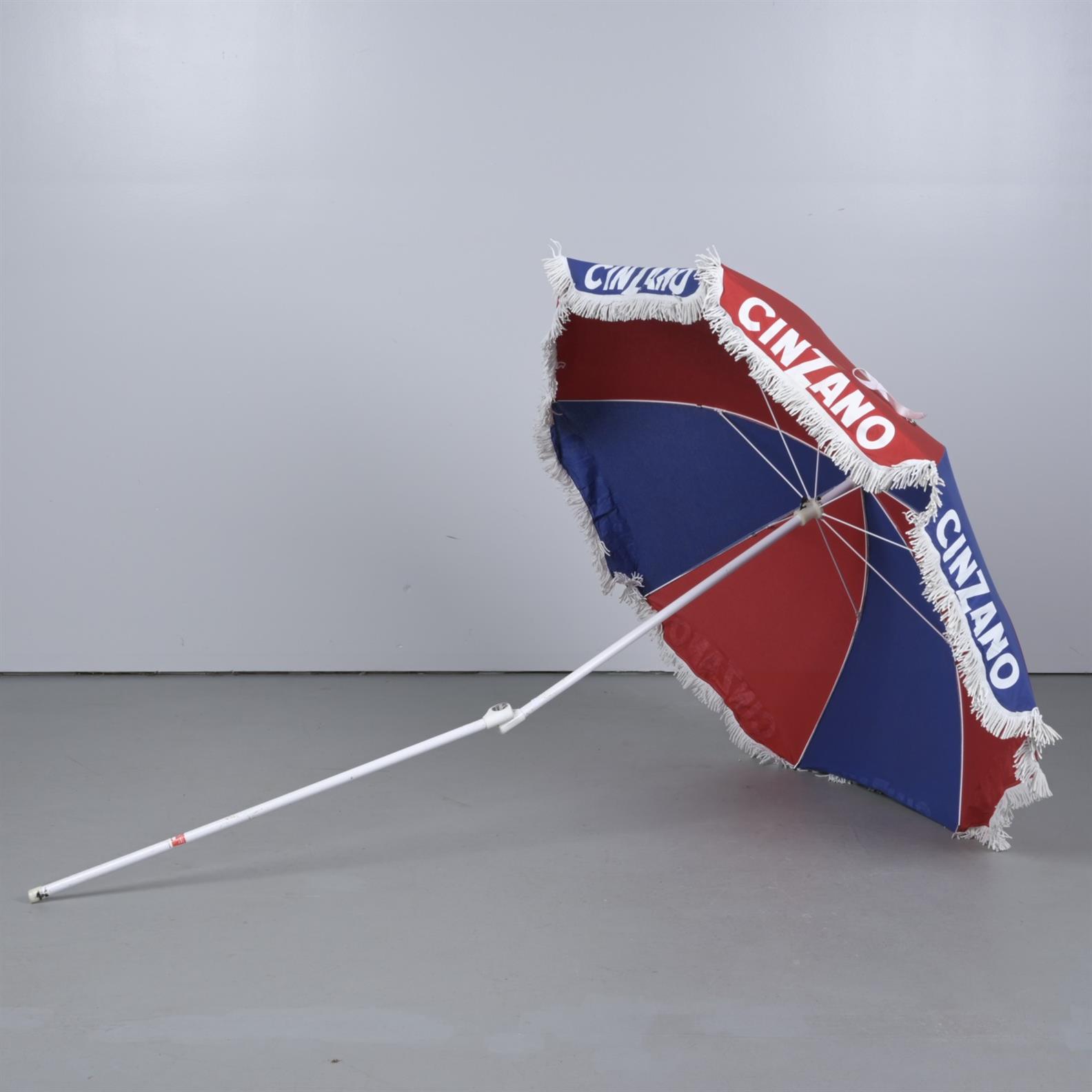 A 'CINZANO' OUTDOOR UMBRELLA (220CM H X 160CM DIA)