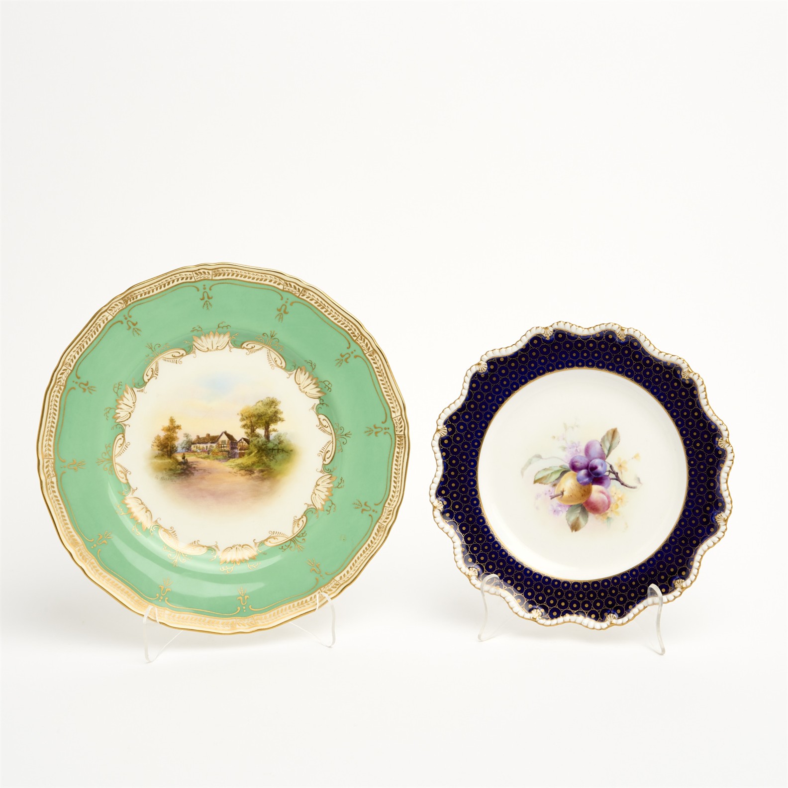 TWO ROYAL WORCESTER CABINET PLATES, ONE PAINTED WITH PASTORAL SCENE BY R. RUSHTON DIA.27CM (LARGEST)
