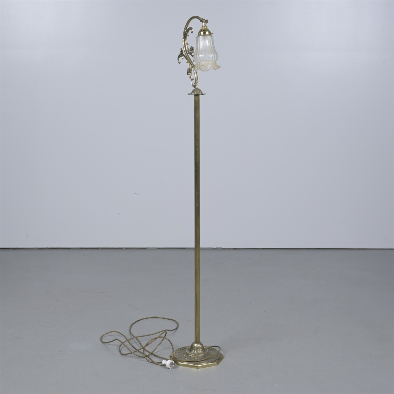A BRASS STANDARD LAMP IN ANTIQUE MANNER (165CM H)