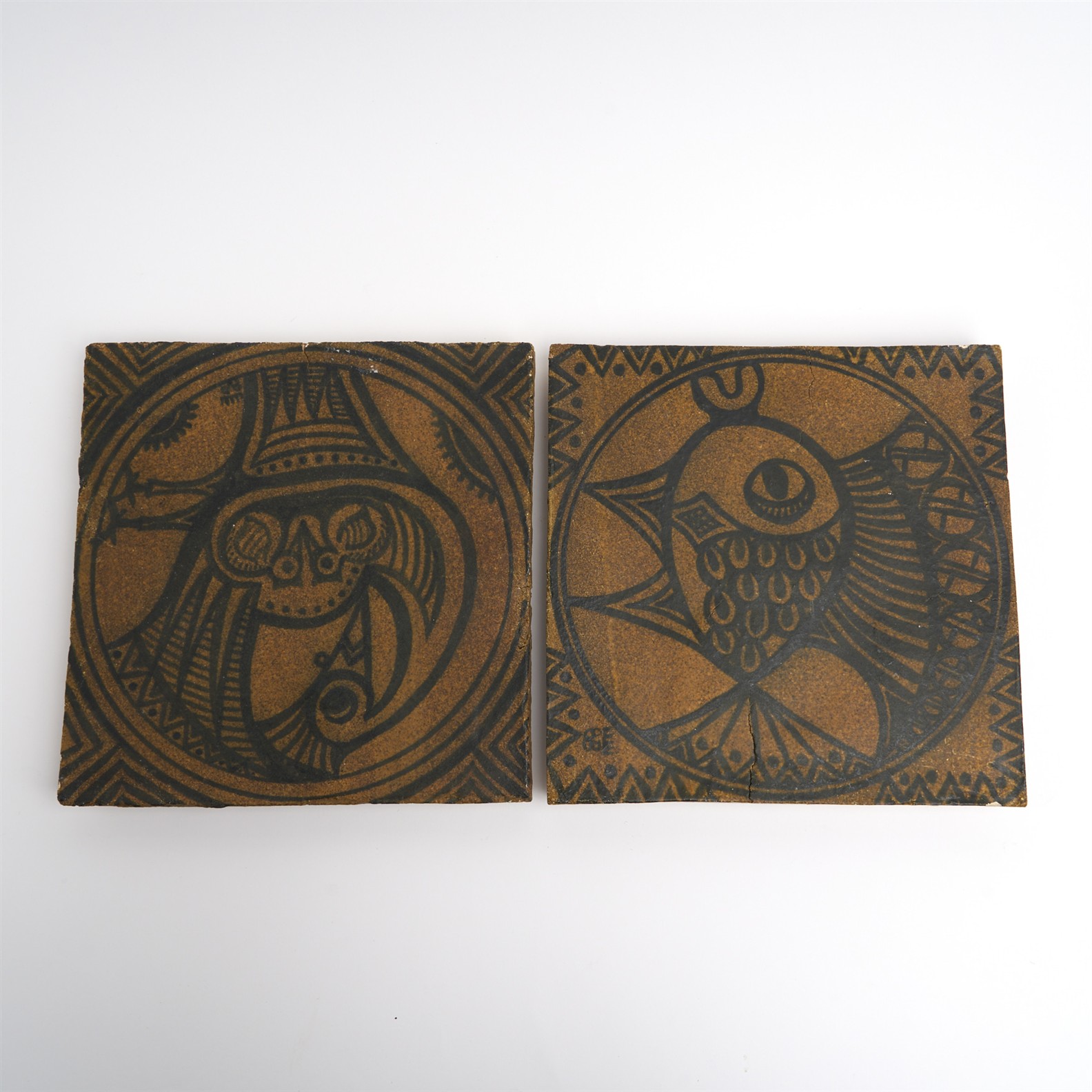 TWO ENGLISH ART POTTERY TILES, CIRCA 1960 29 X 29CM (A/F)