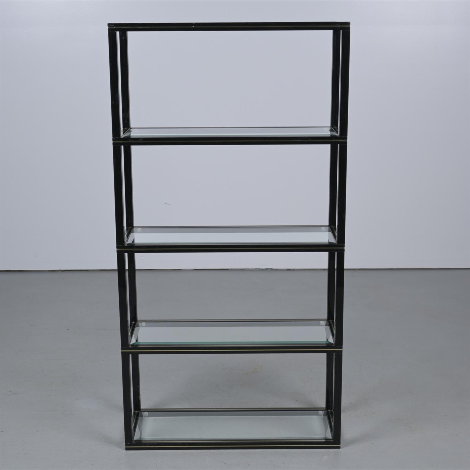 A PIERRE VANDEL LACQUERED METAL AND GLASS ETAGERE (155CM H X 80CM W X 30CM D)