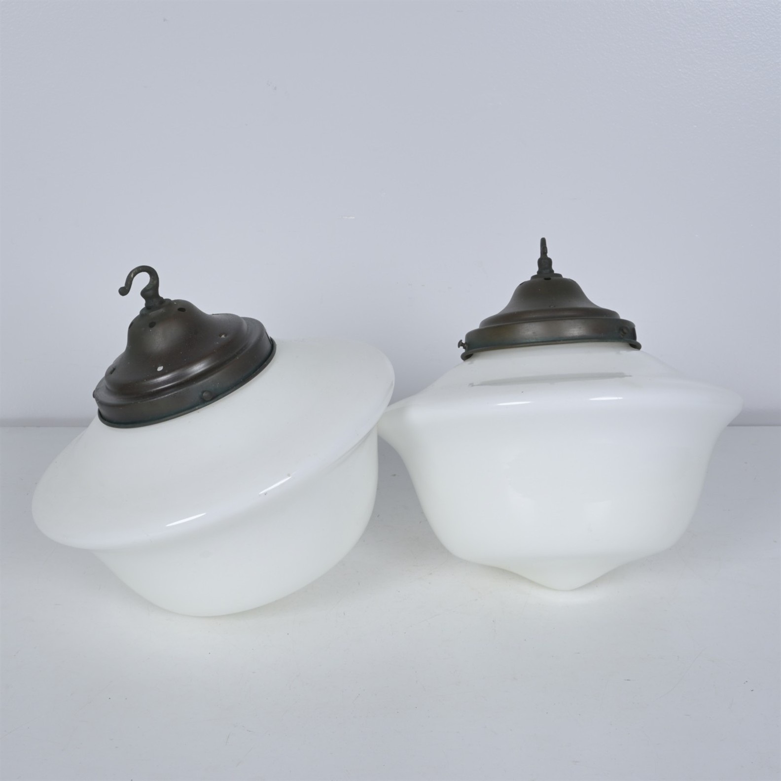 A PAIR OF GLASS PENDANT SHADES (35CM H X 38CM DIA)