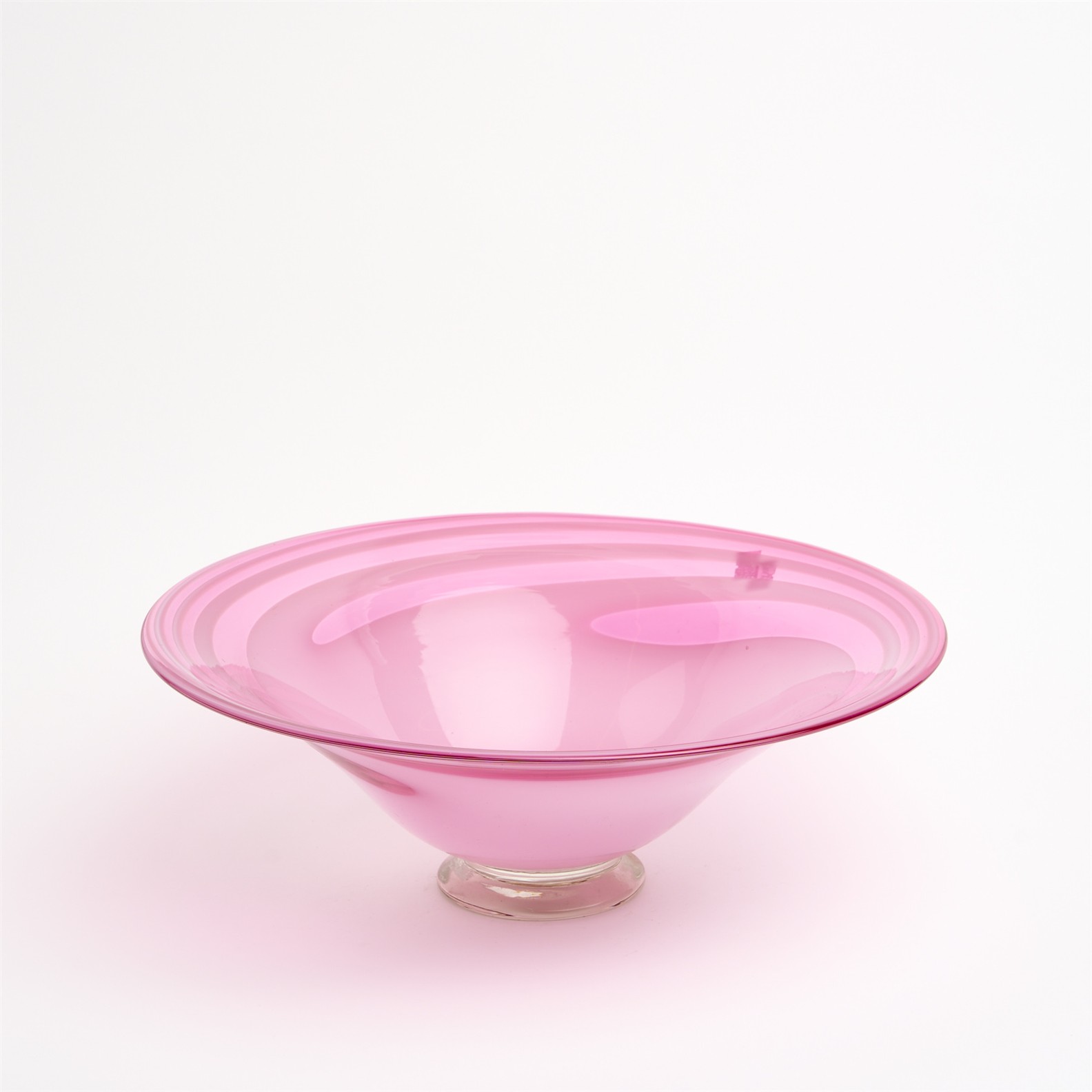 AN AUSTRALIAN PINK SWIRL ART GLASS BOWL, SIGNED TO BASE DIA.35CM