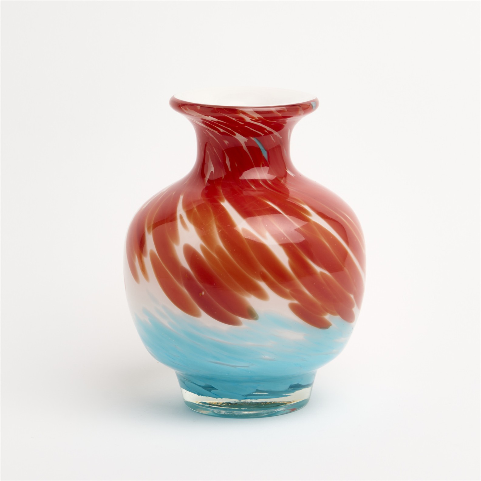 A RED WHITE AND AQUA ART GLASS VASE H.24CM