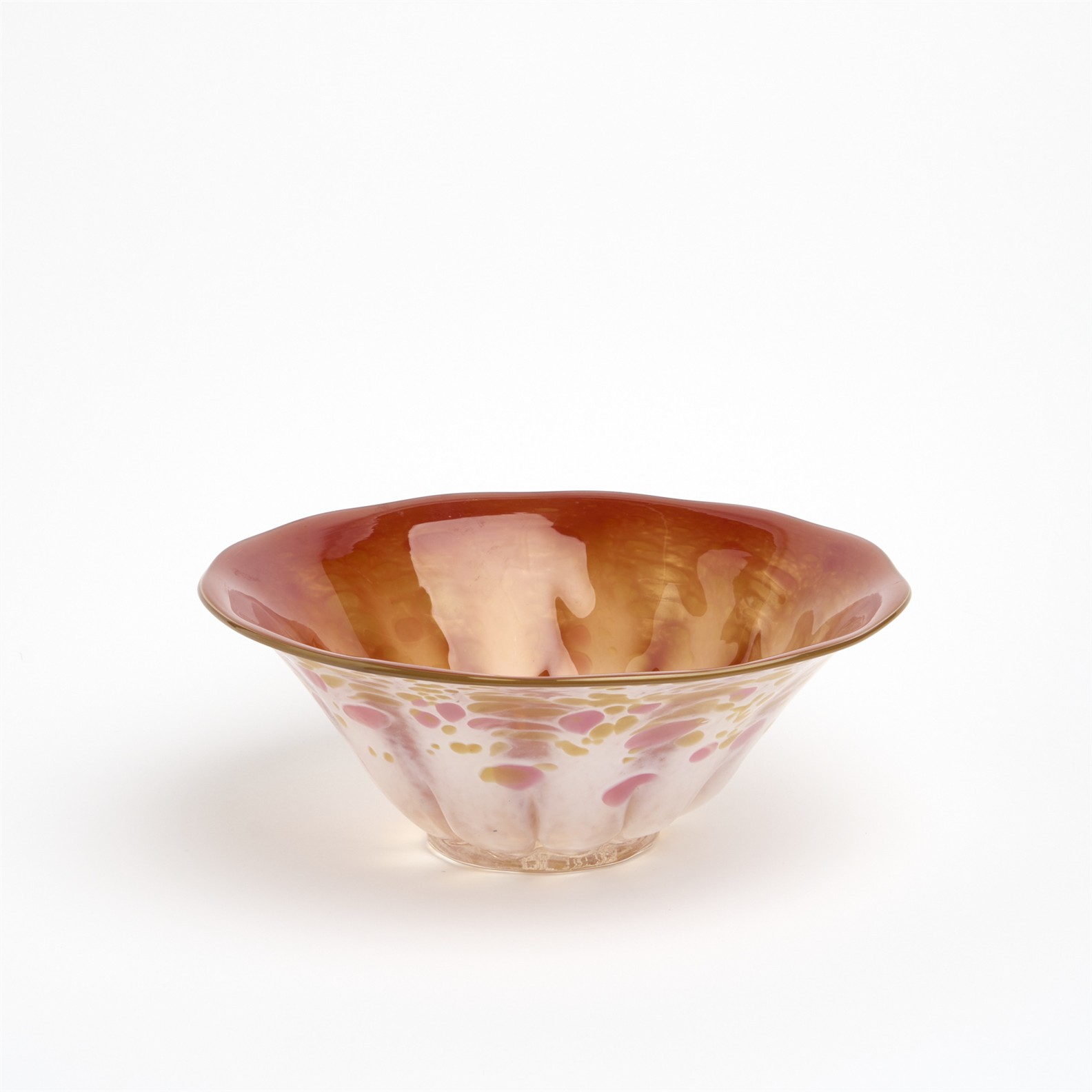 A MULTI COLOURED FOOTED BOWL BY JONATHAN WESCOTTE, SIGNED AND DATED 1989 DIA.27CM
