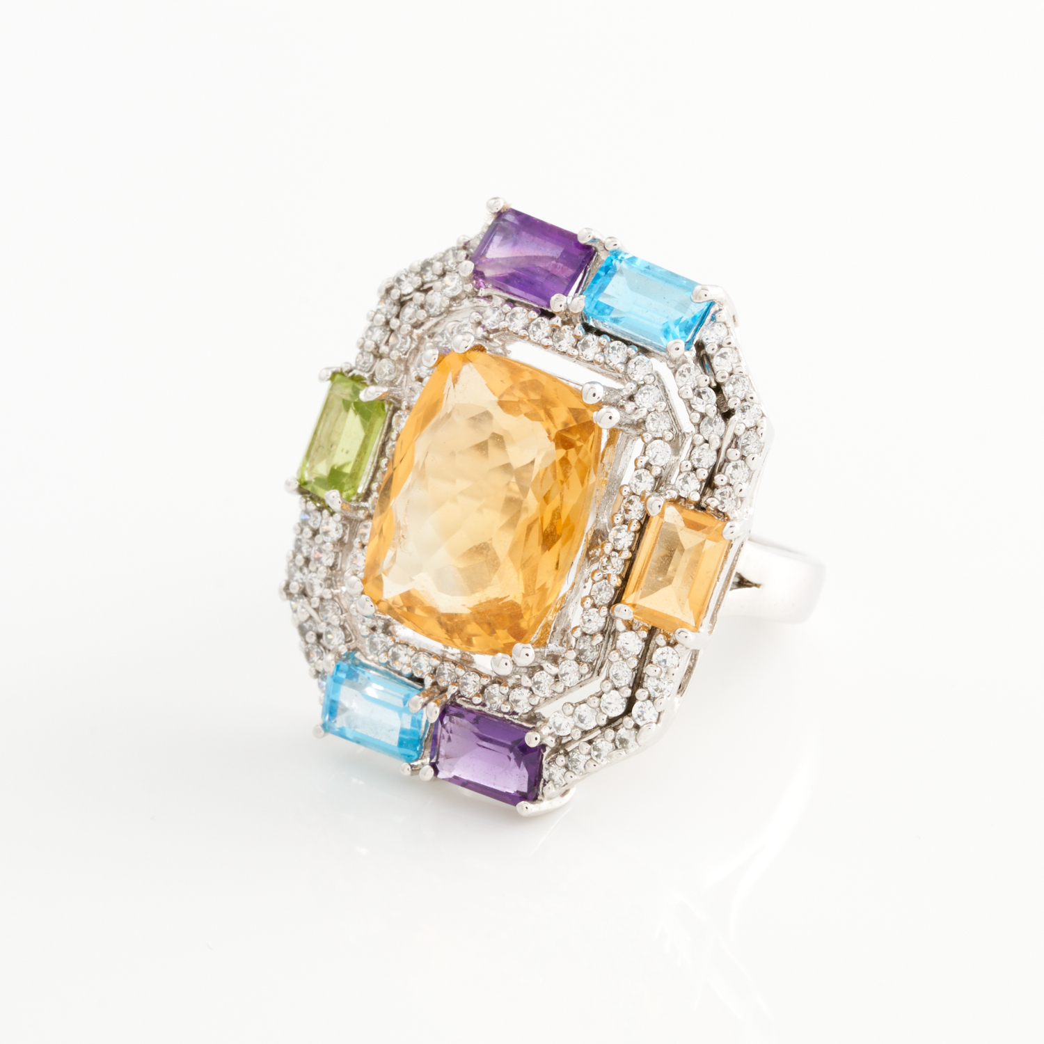 A GEM SET RING COCKTAIL IN STERLING SILVER, Q 1/2