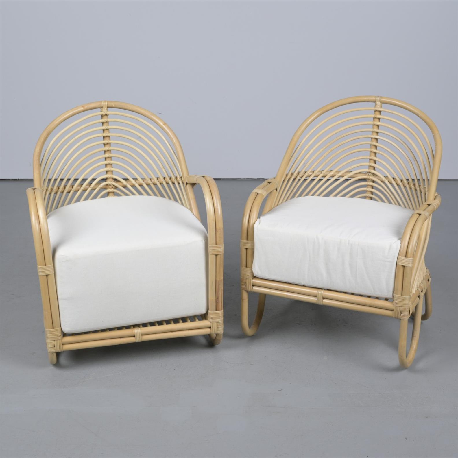 TWO CANE CONSERVATORY ARM CHAIRS (89CM H X 70CM W X 71CM D)