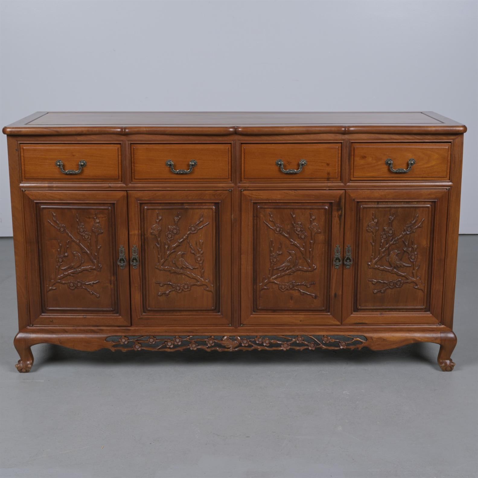 A CHINESE HARDWOOD SIDEBOARD (87CM H X 154CM W 51CM D)