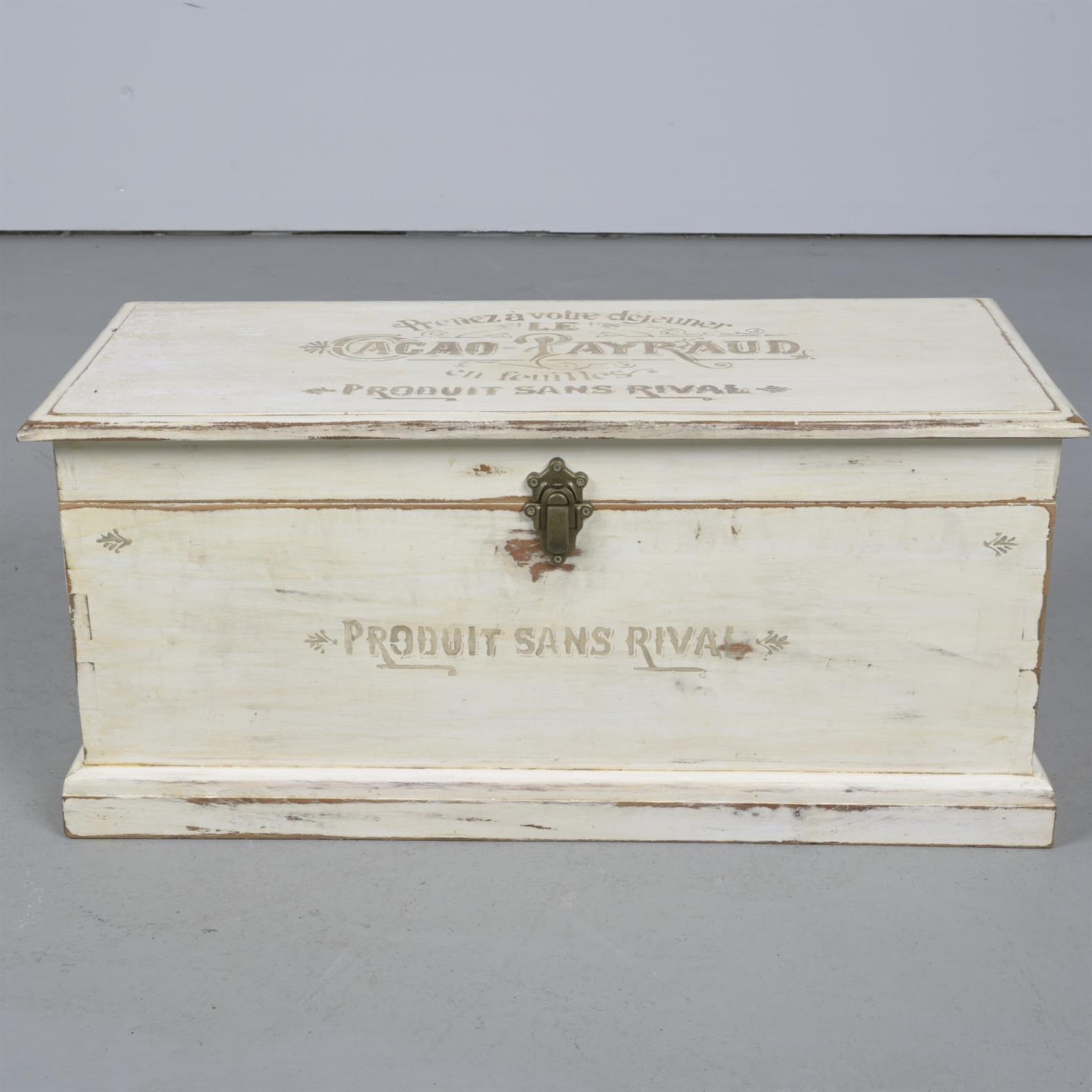 A PAINTED TRUNK IN FRENCH MANNER (38CM H X 84CM W X 40CM D)