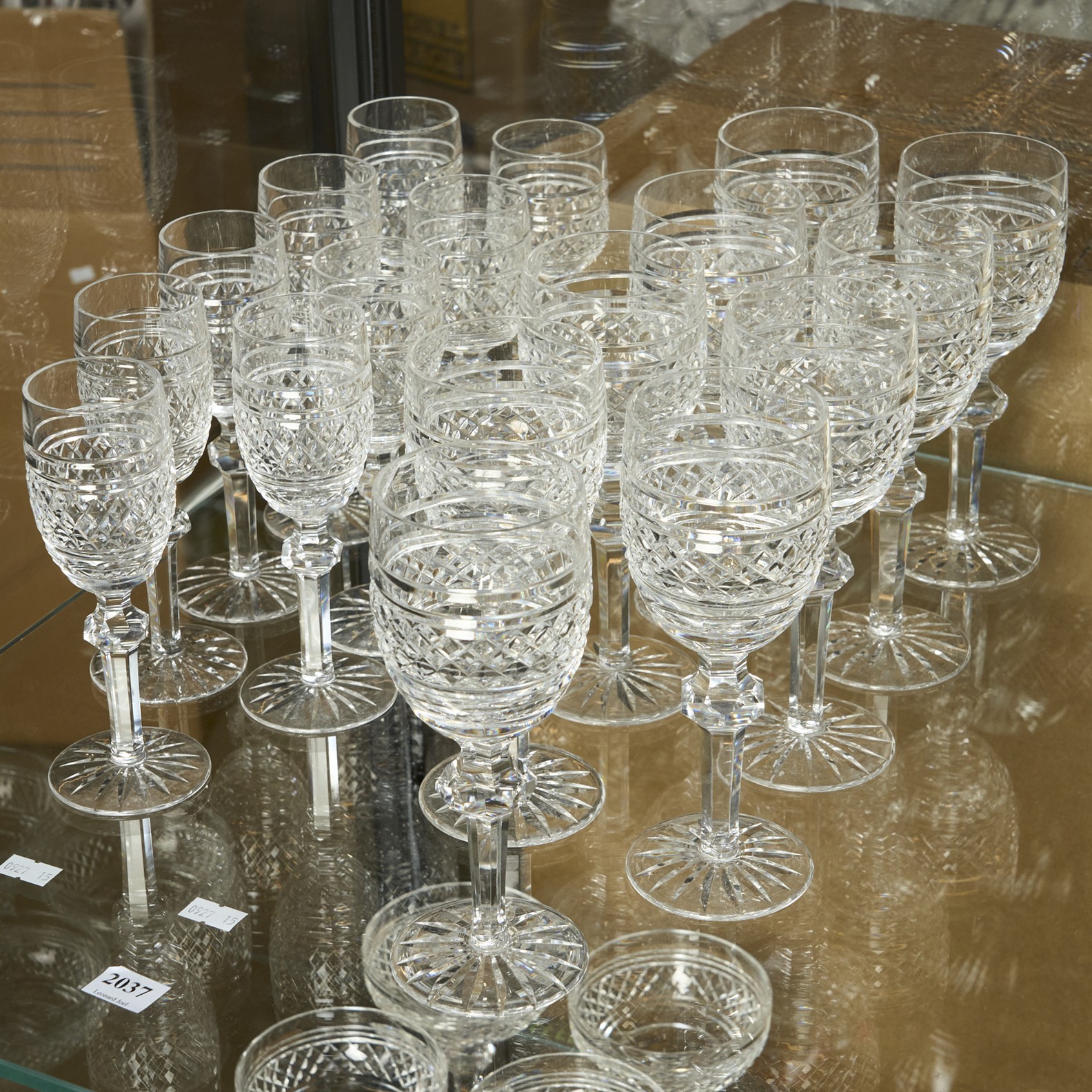 NINE IRISH WATERFORD CASTLETOWN PATTERN WHITE WINES AND NINE SHERRIES H.18CM (TALLEST)