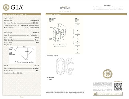 Accompanied by a facsimile GIA report (gia.edu/report-check-landing) numbered 2235233635, dated 17 April 2024 stating that the 5.16 carat diamond is natural, fancy yellow-brown colour, VVS1 clarity.