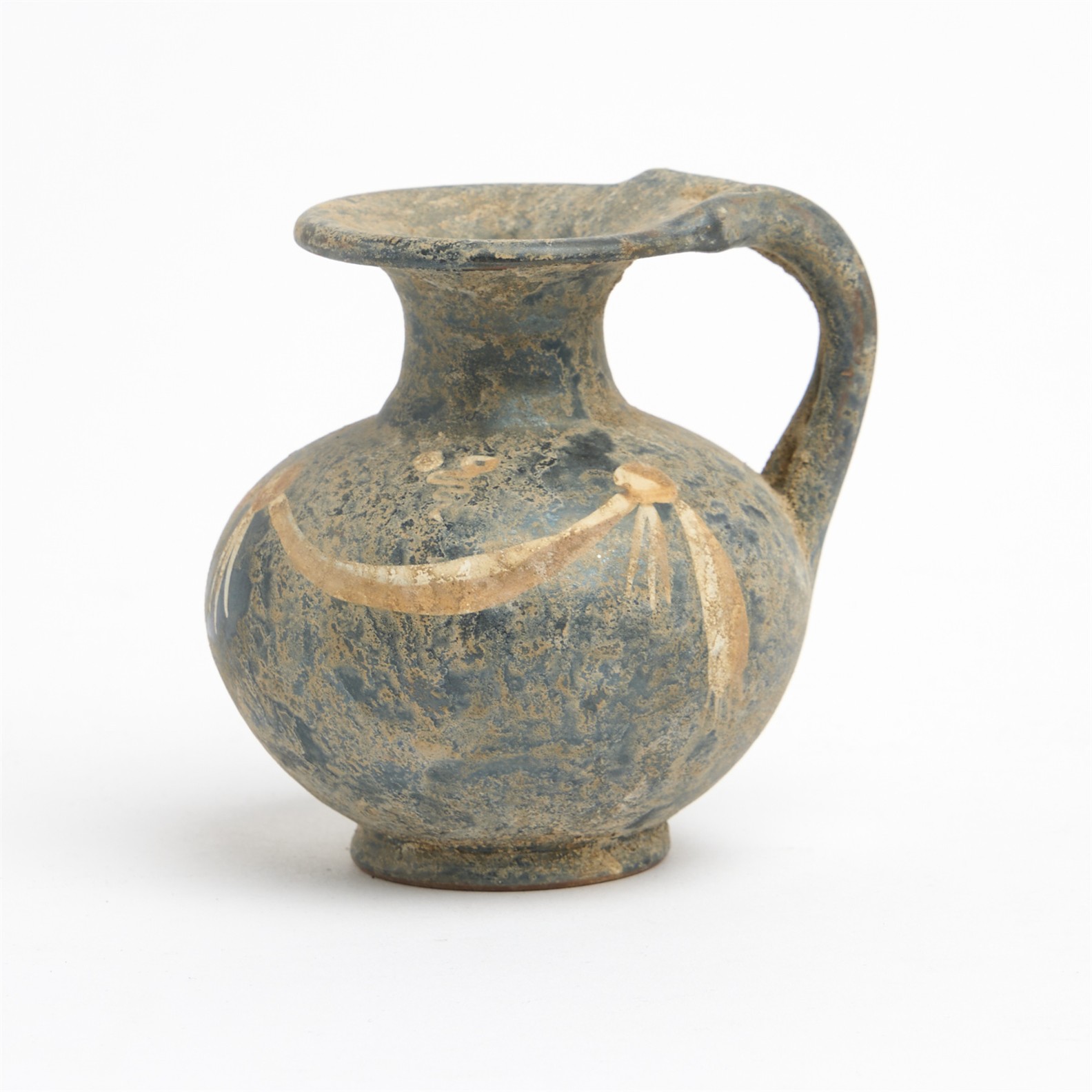 A SOUTH ITALIAN GNATHIAN WARE SQUAT LEKYTHOS SASH MOTIF H. 8.5CM