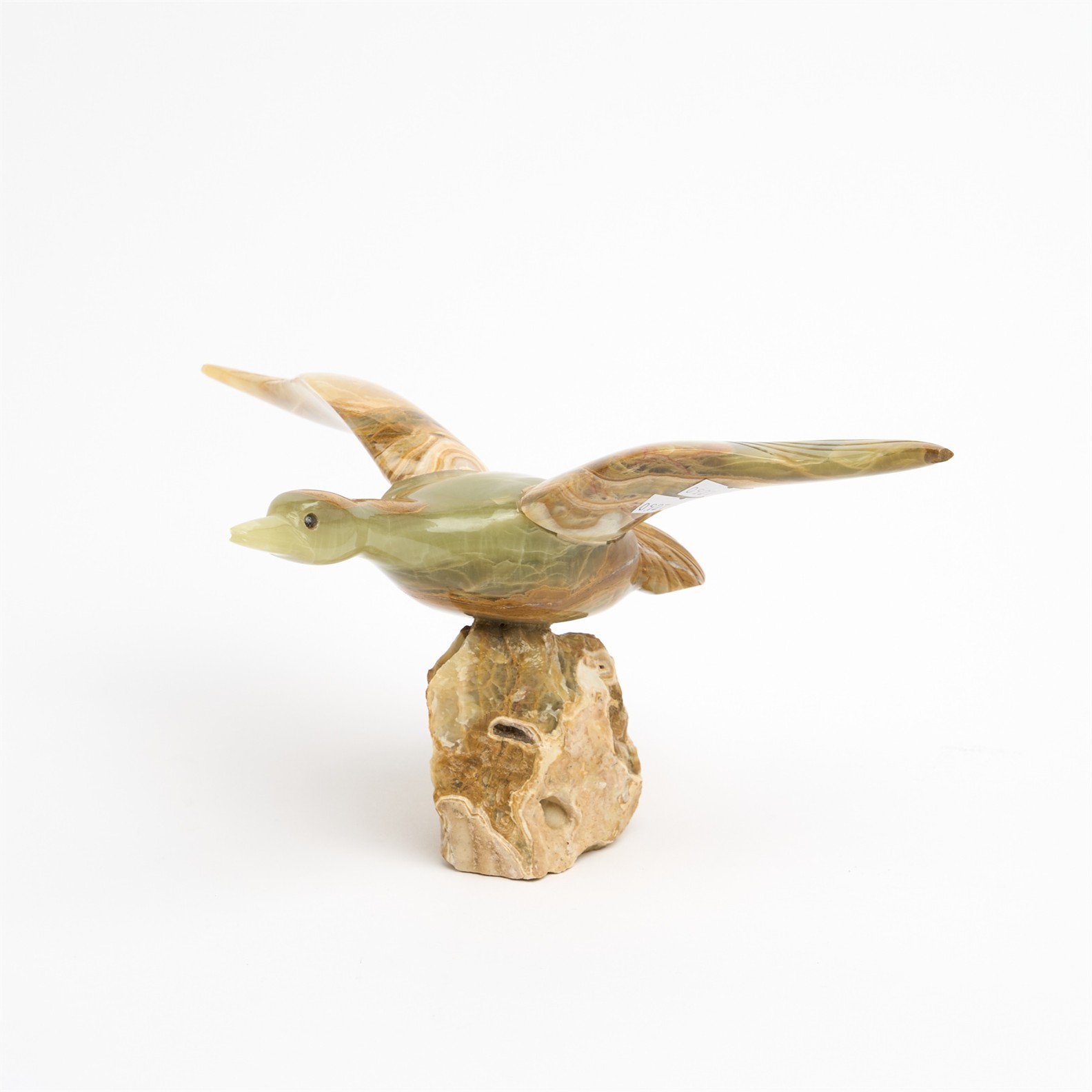 A STONE AND AGATE DUCK FIGURE (REPAIRED) L.28CM