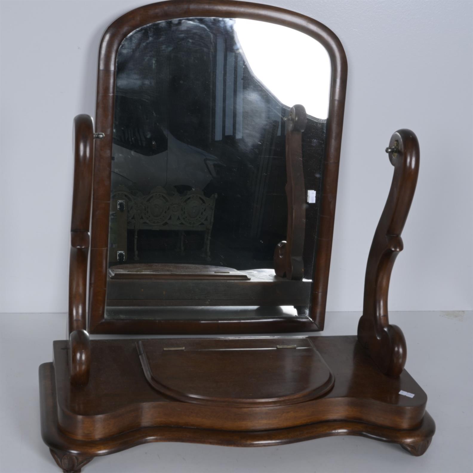 A VICTORIAN MAHOGANY VANITY MIRROR - MISSING WING-NUTS (A/F) (74CM H X 59CM W X 26CM D)