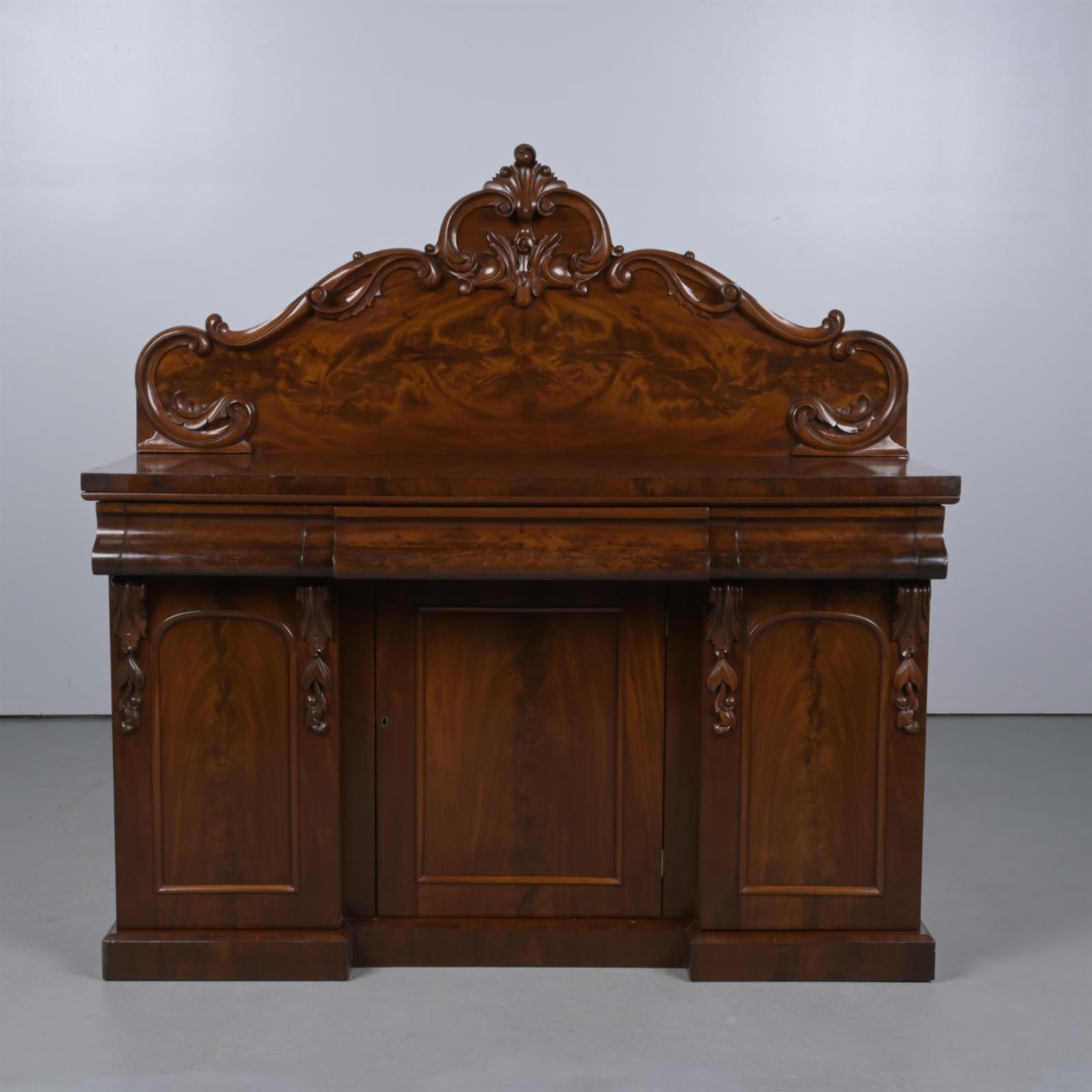 A VICTORIAN MAHOGANY SIDEBOARD (A/F) (152CM H X 153CM W X 57CM D)