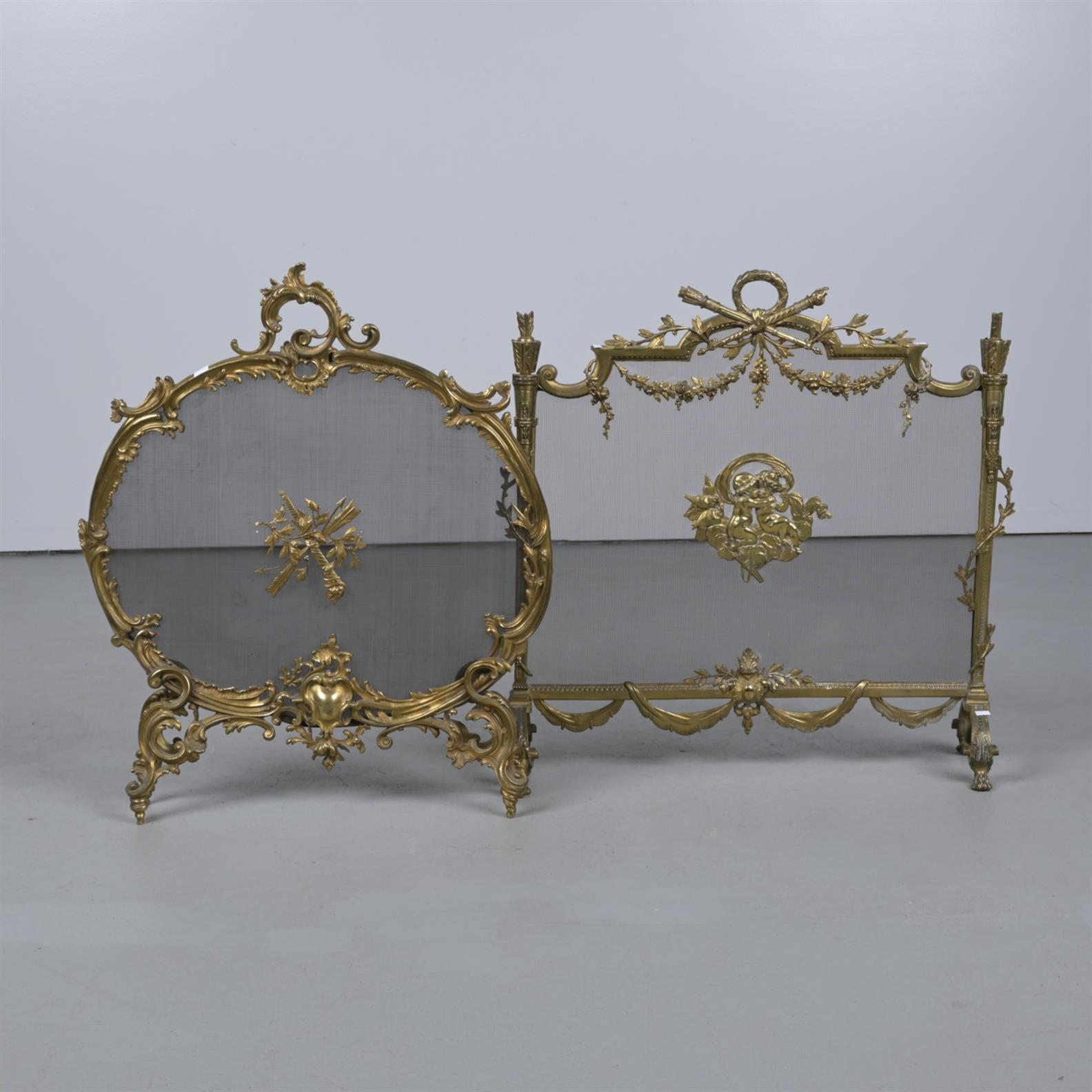 TWO BRASS FIRE SCREENS (80CM H X 74CM W, LARGEST)