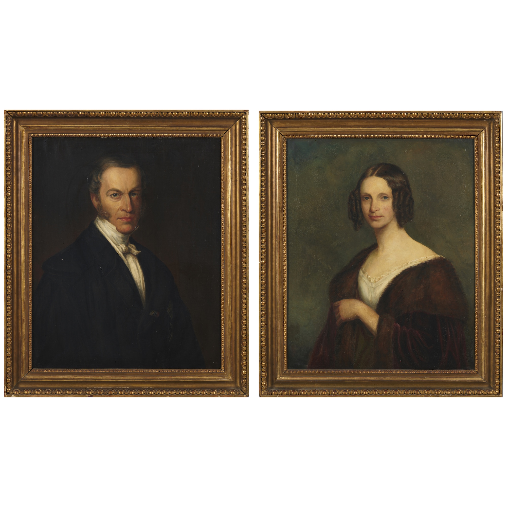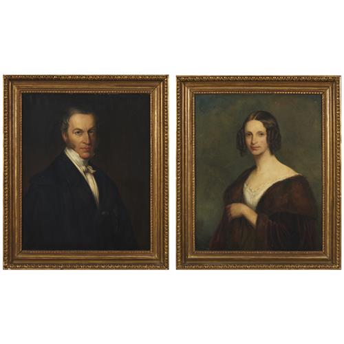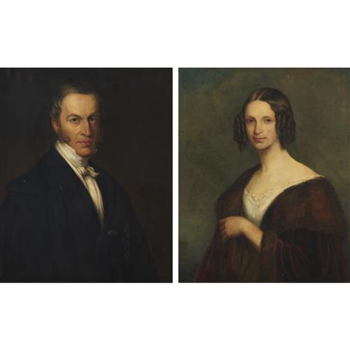 A pair of long bust-length portraits of a gentleman and lady, probably Karl von Küster (1808–?) and his wife Baroness Marie (née Geymüller, 1811–1866)