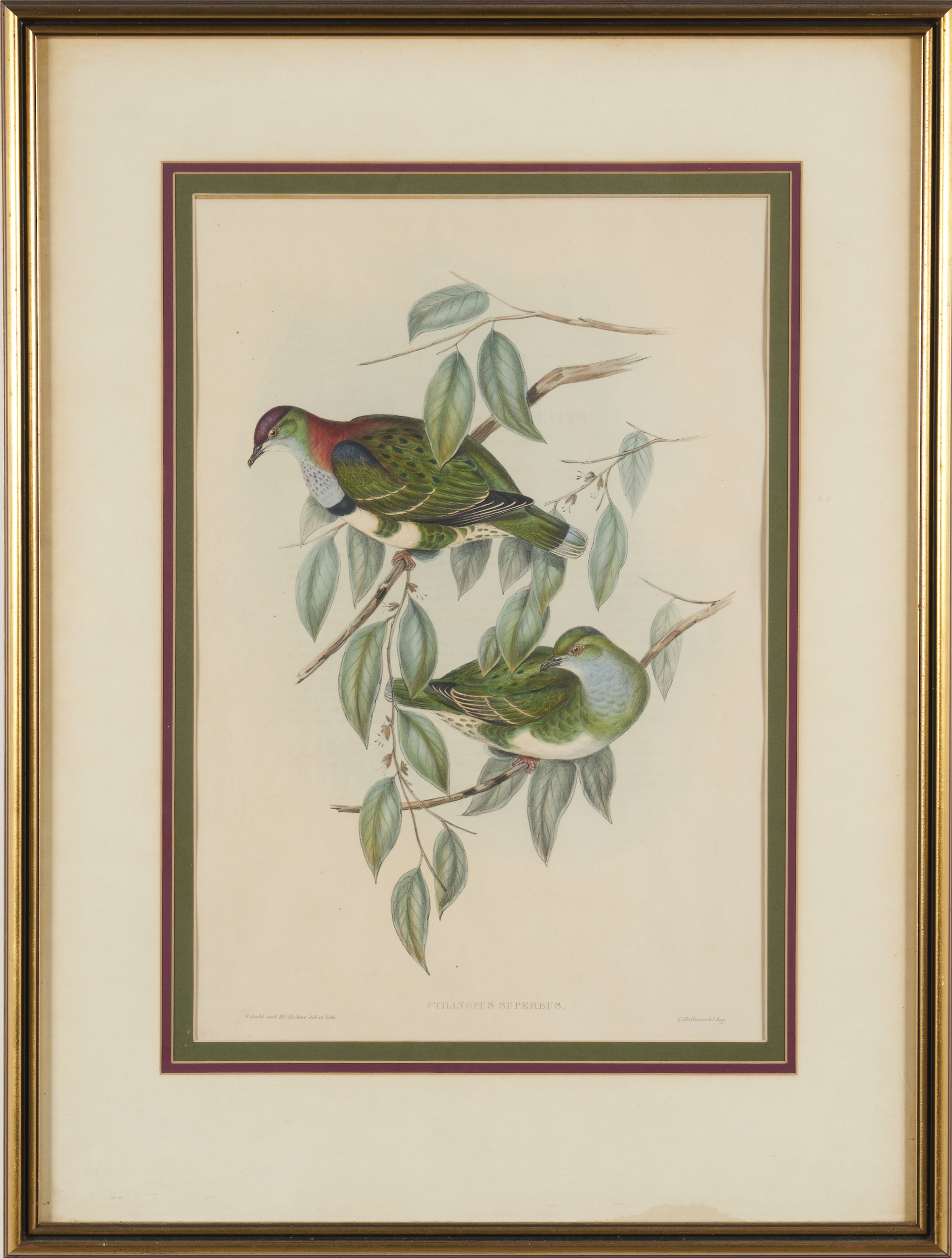 Two plates: 'Ptilinopus superbus' and 'Chalcophaps chrysochlora'