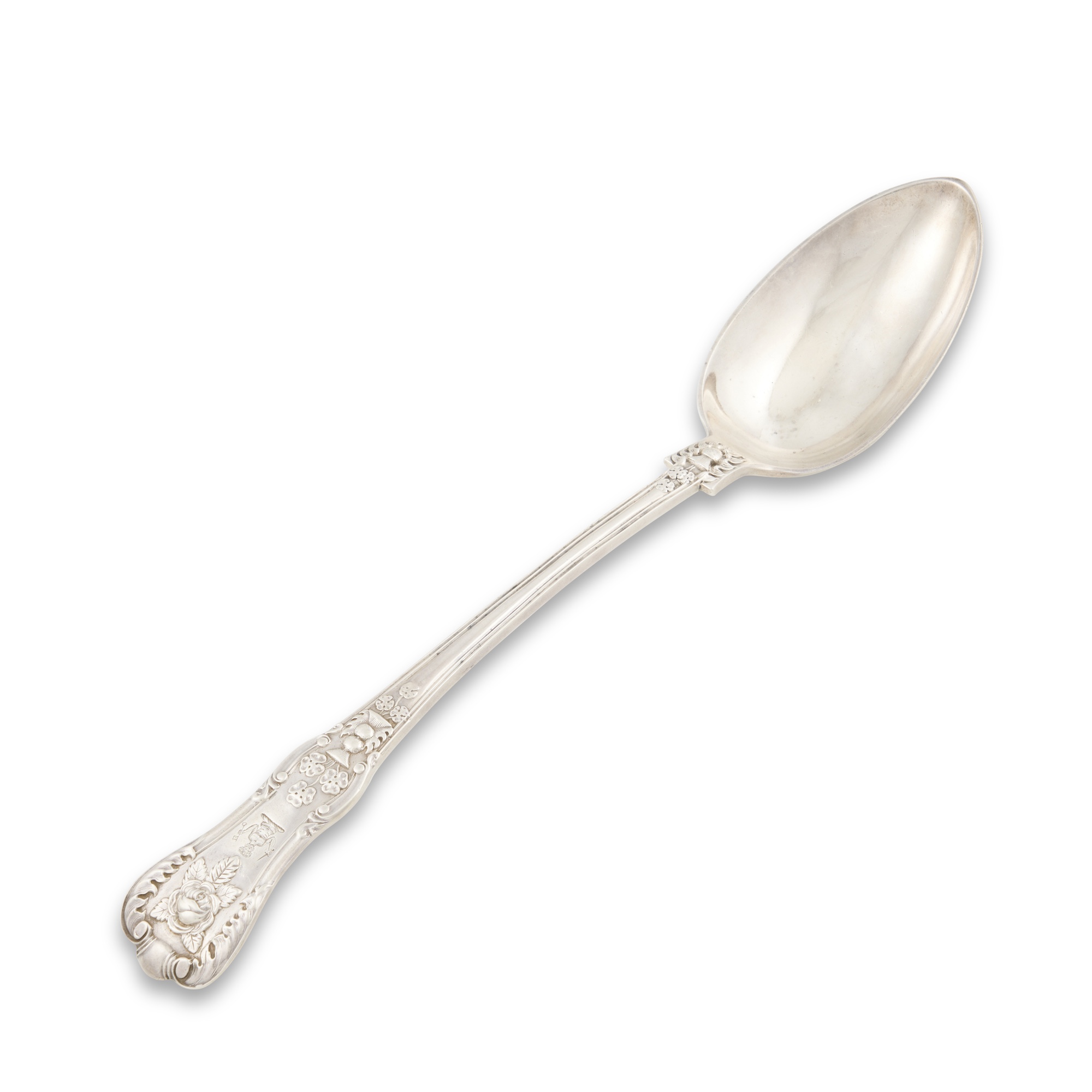 A RARE VICTORIAN STERLING SILVER 'OLD ENGLAND PATTERN' BASTING SPOON