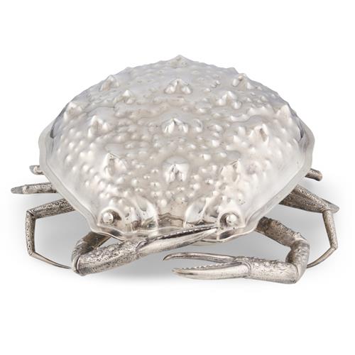 AN ITALIAN SILVER PLATE CRAB-FORM COVERED SERVING DISH