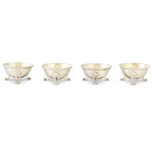A SET OF FOUR GEORGE V STERLING SILVER SALT CELLARS