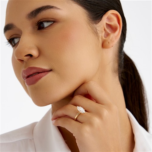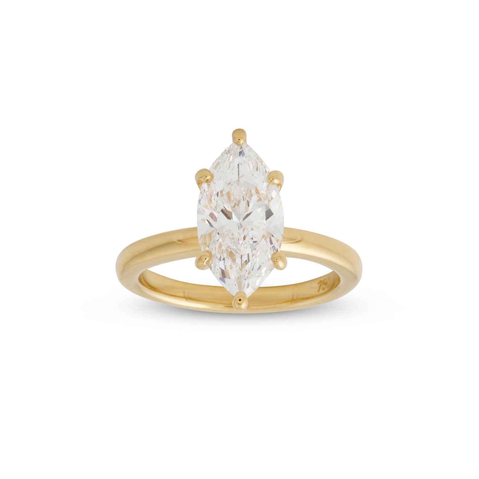 Claw-set with a marquise brilliant-cut diamond weighing 2.52 carats, mounted in 18ct gold, size L, gross weight approximately 5.1 grams.