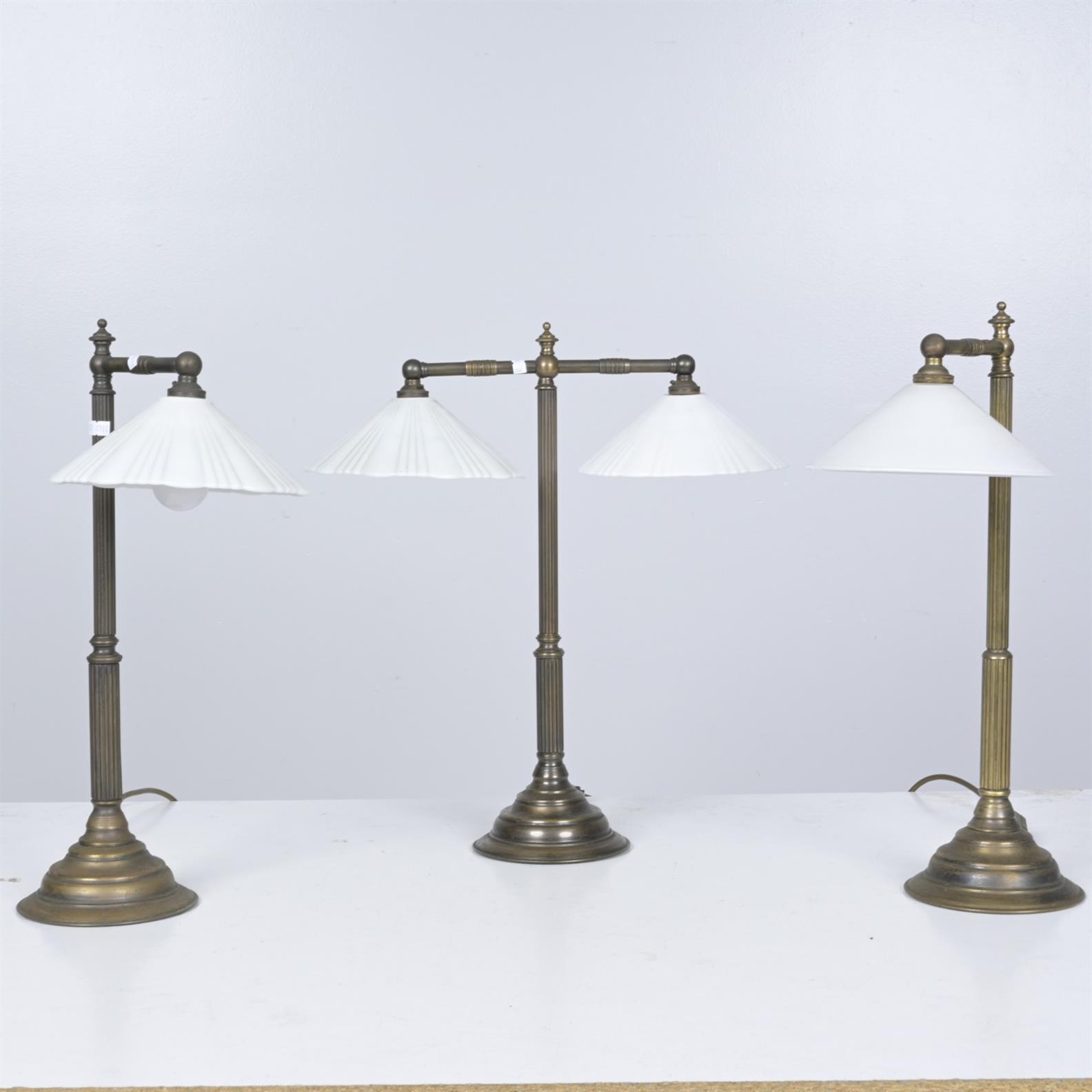 A GROUP OF METAL AND GLASS TABLE LAMPS (49CM H X 30CM DIA, LARGEST)