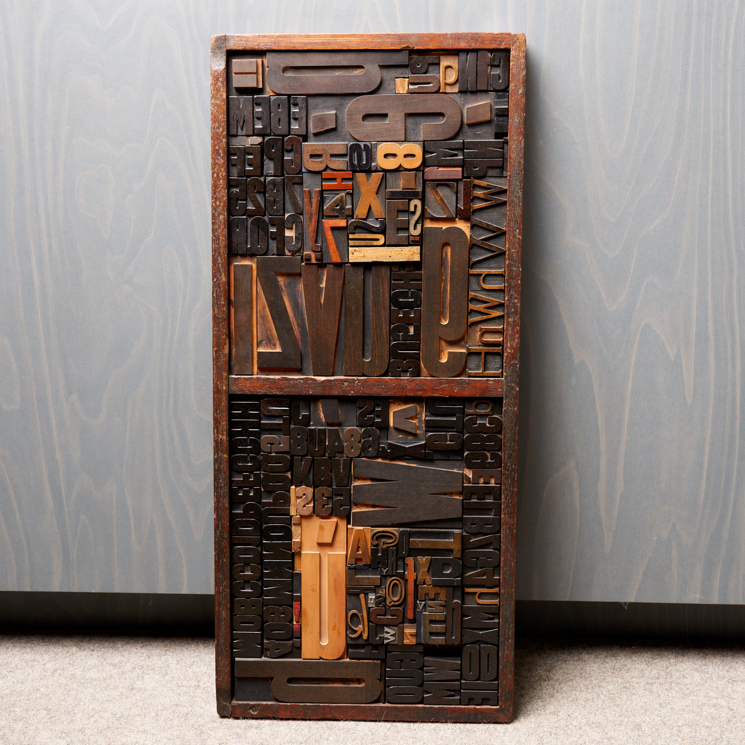 A LETTERPRESS IN PRINTER'S TRAY L.83CM