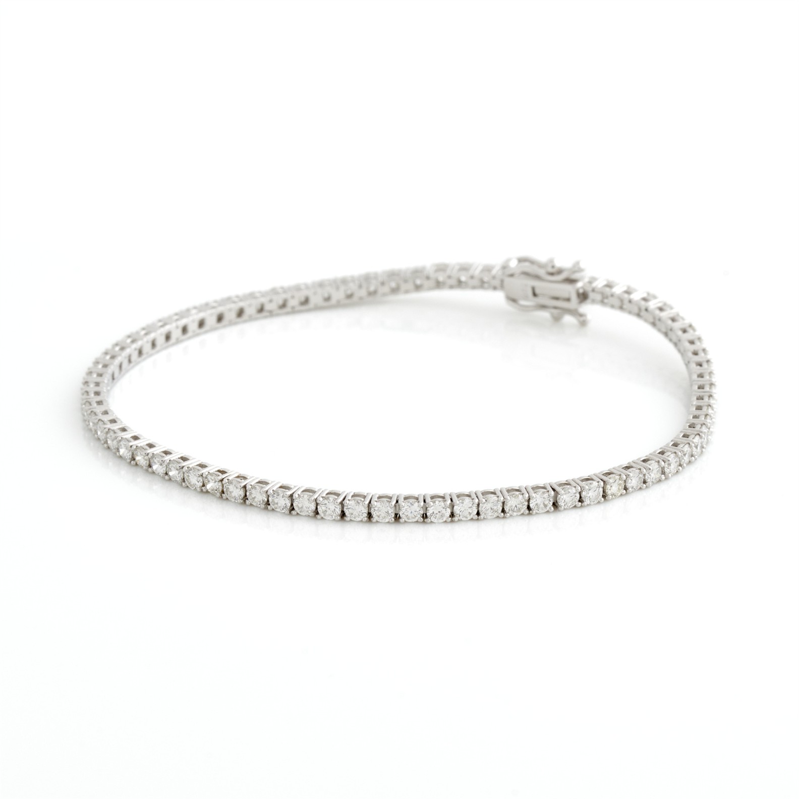 A DIAMOND TENNIS BRACELET IN 18CT WHITE GOLD, THE DIAMONDS TOTALLING 3.25CT, F/VS CLARITY, LENGTH 185MM, ACCOMPANIED BY A VALUATION