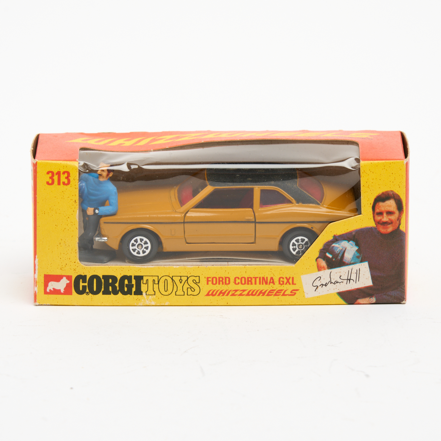 A CORGI 313 GRAHAM HILL FORD CORTINA RH DRIVE EXPORT ISSUE, WITH BOX L.14CM (BOX)