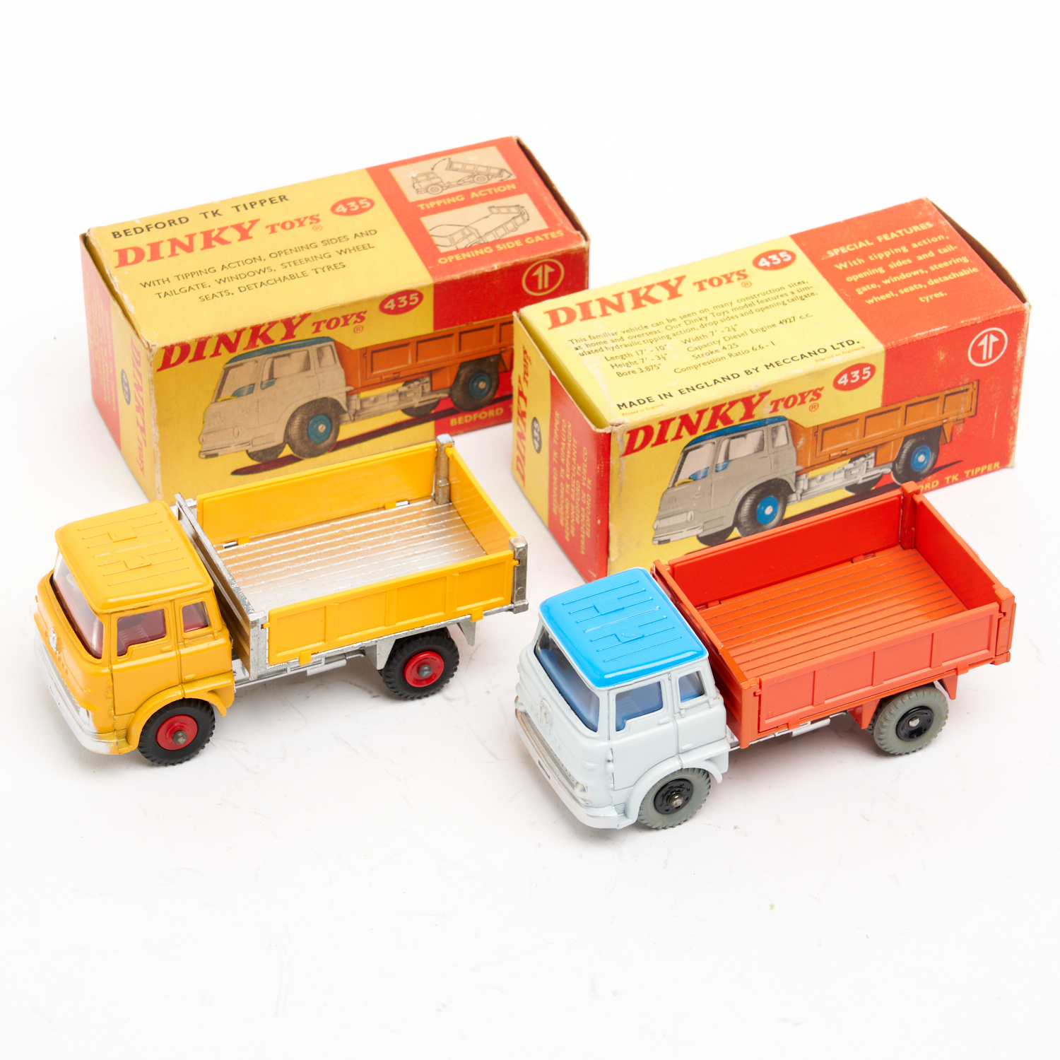 TWO DINKY 435 BEDFORD T.K TIPPERS, INCLUDES BLUE AND RED, AND YELLOW, BOTH WITH BOXES