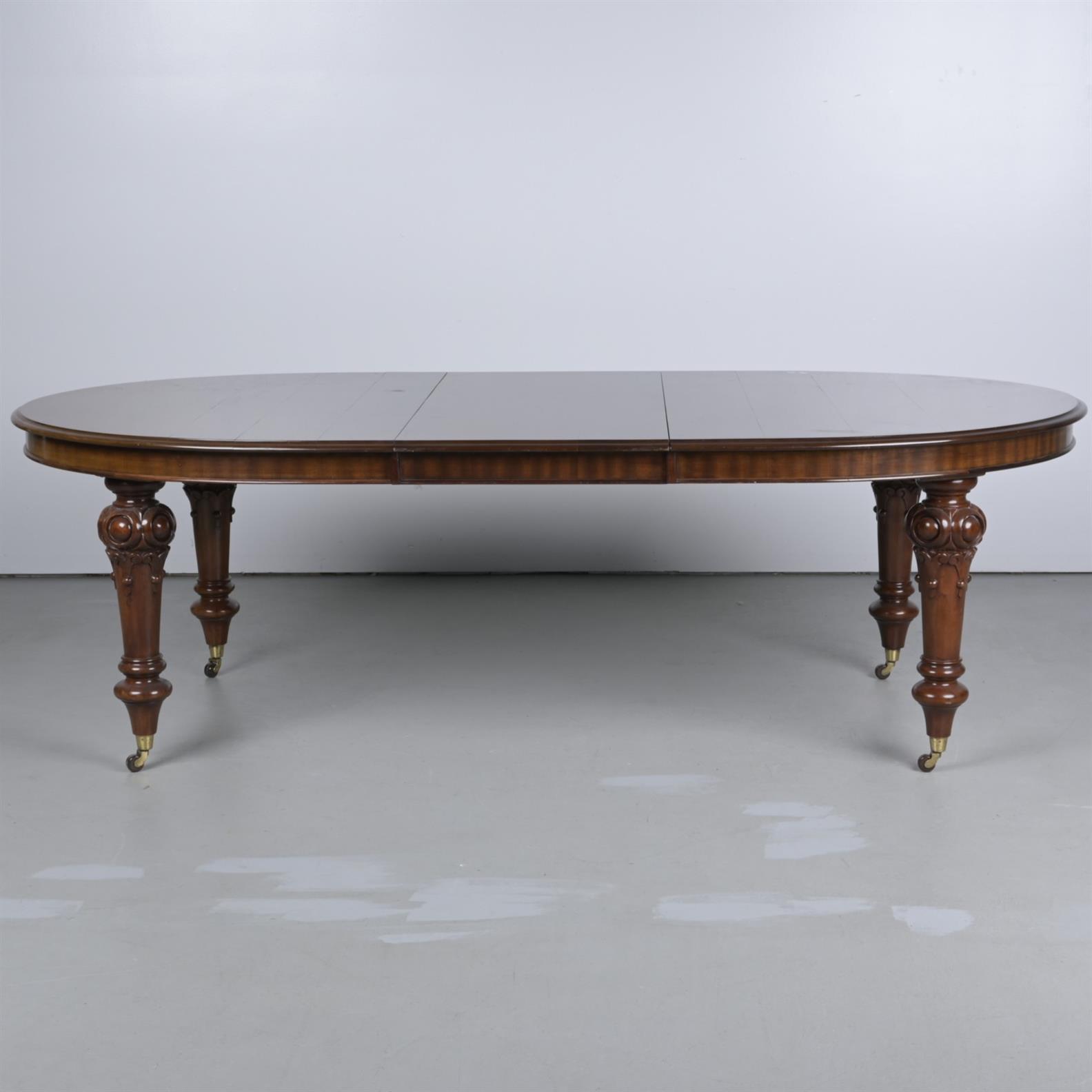 A VICTORIAN MAHOGANY EXTENDING DINING TABLE (76H X 242W EXTENDED X 122D CM - LEAF MEASURES 55CM)