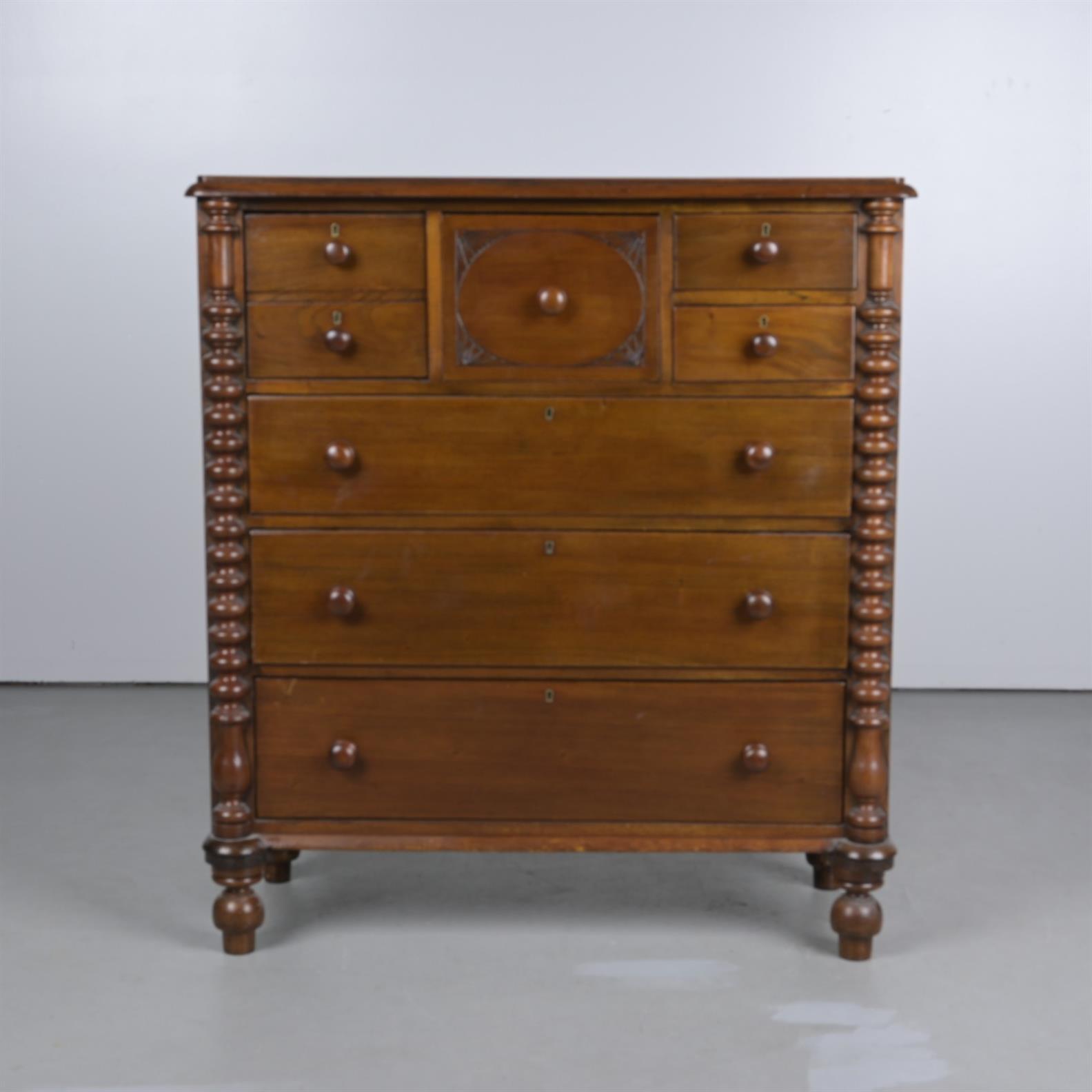 A VICTORIAN CEDAR CHEST OF DRAWERS (122H X 112W X 47D CM) (THIS ITEM MUST BE REMOVED BY THE CUSTOMER OR CARRIERS AT THE CUSTOMER'S EXPENSE. LEONARD JOEL STAFF CANNOT ASSIST CARRYING THIS ITEM)