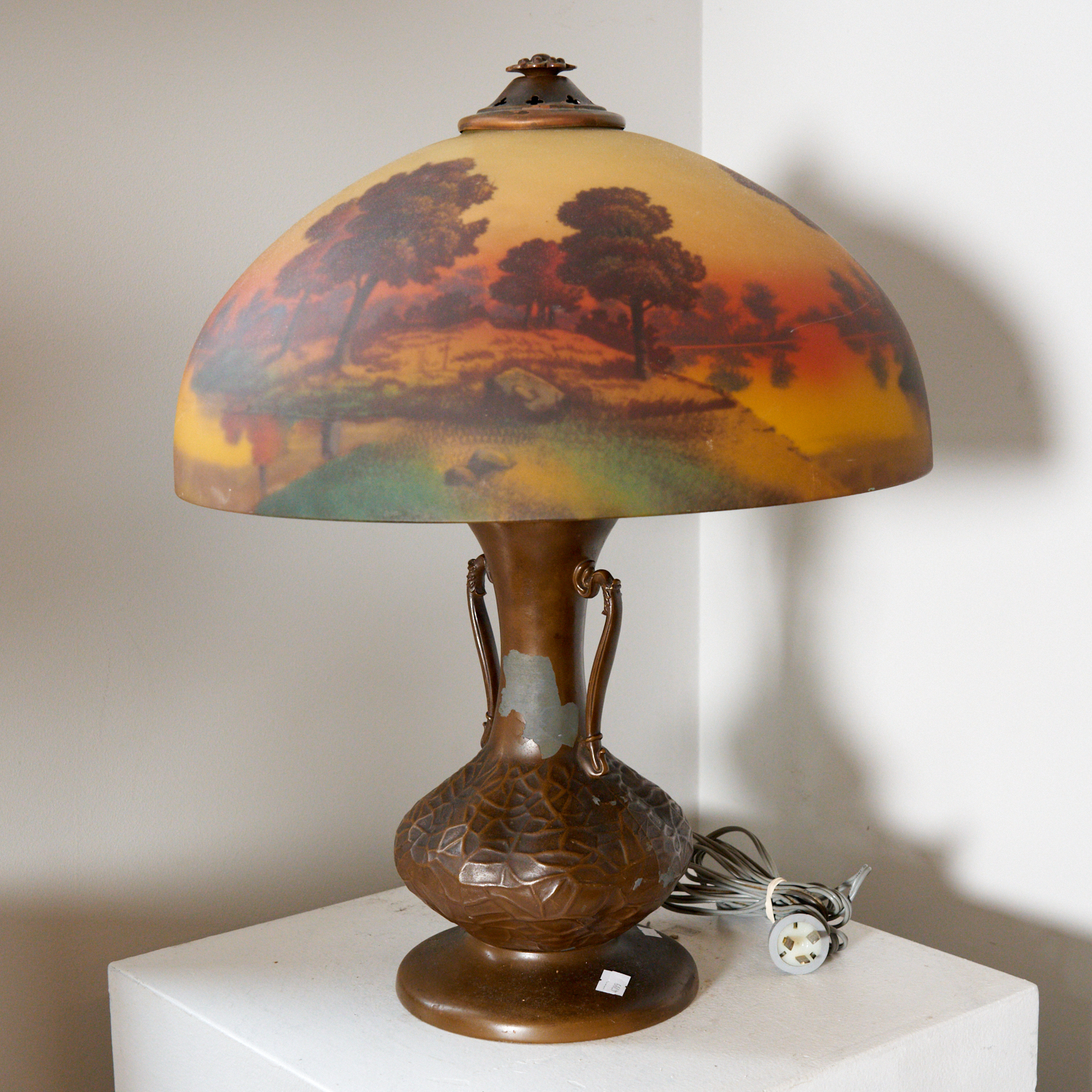 A HANDEL STYLE ART NOUVEAU LAMP H.60CM (A/F)