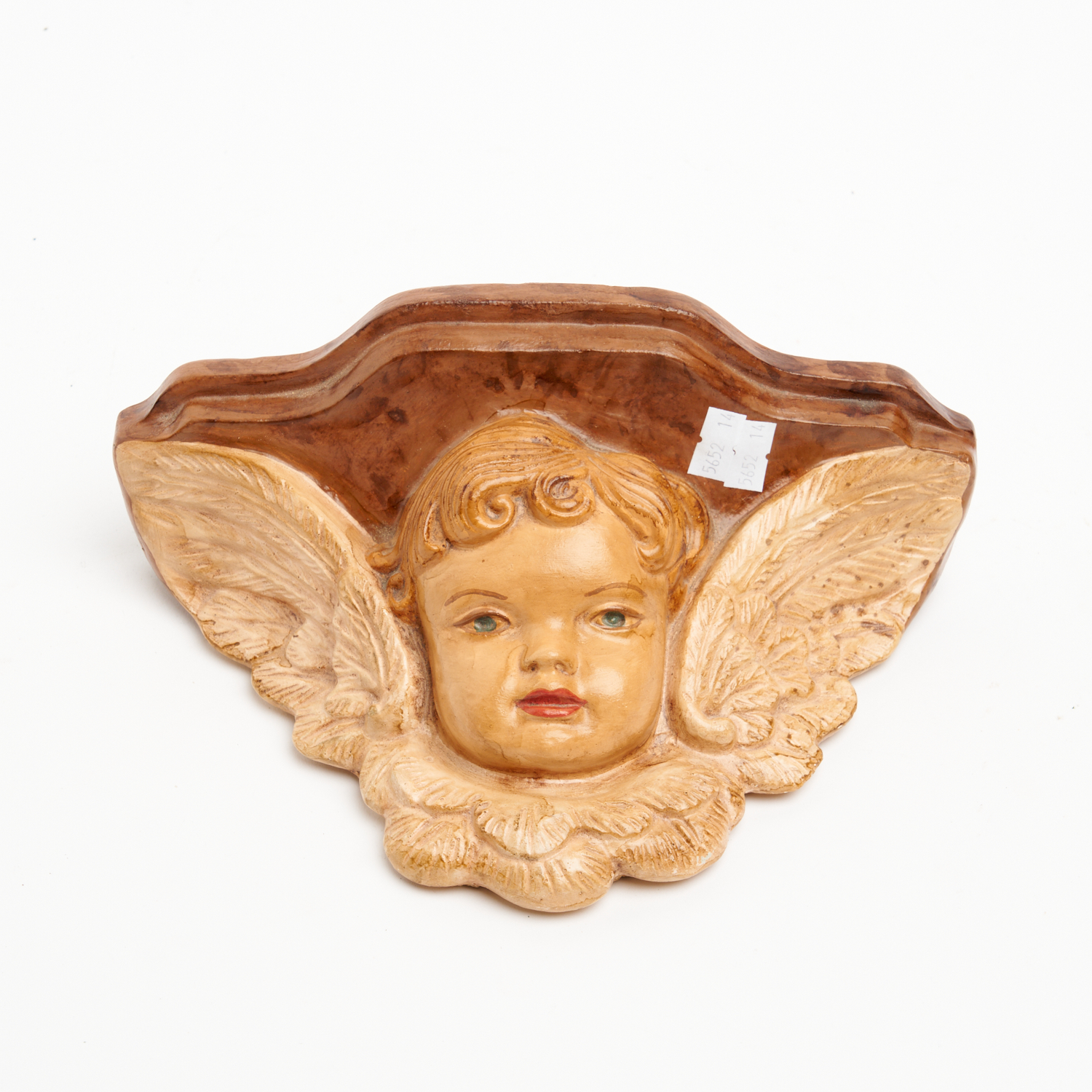 A VINTAGE ANGEL CHERUB PLASTER WALL PLAQUE H.17CM