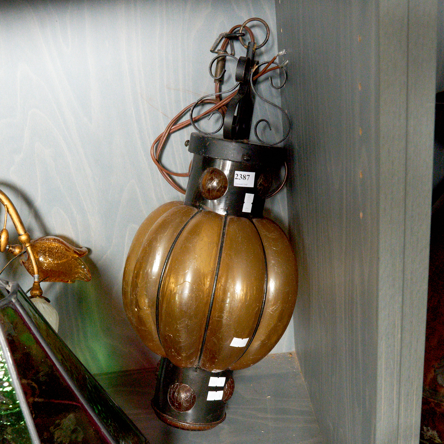 A VINTAGE ITALIAN METAL CASED AMBER GLASS CEILING SHADE H.51CM