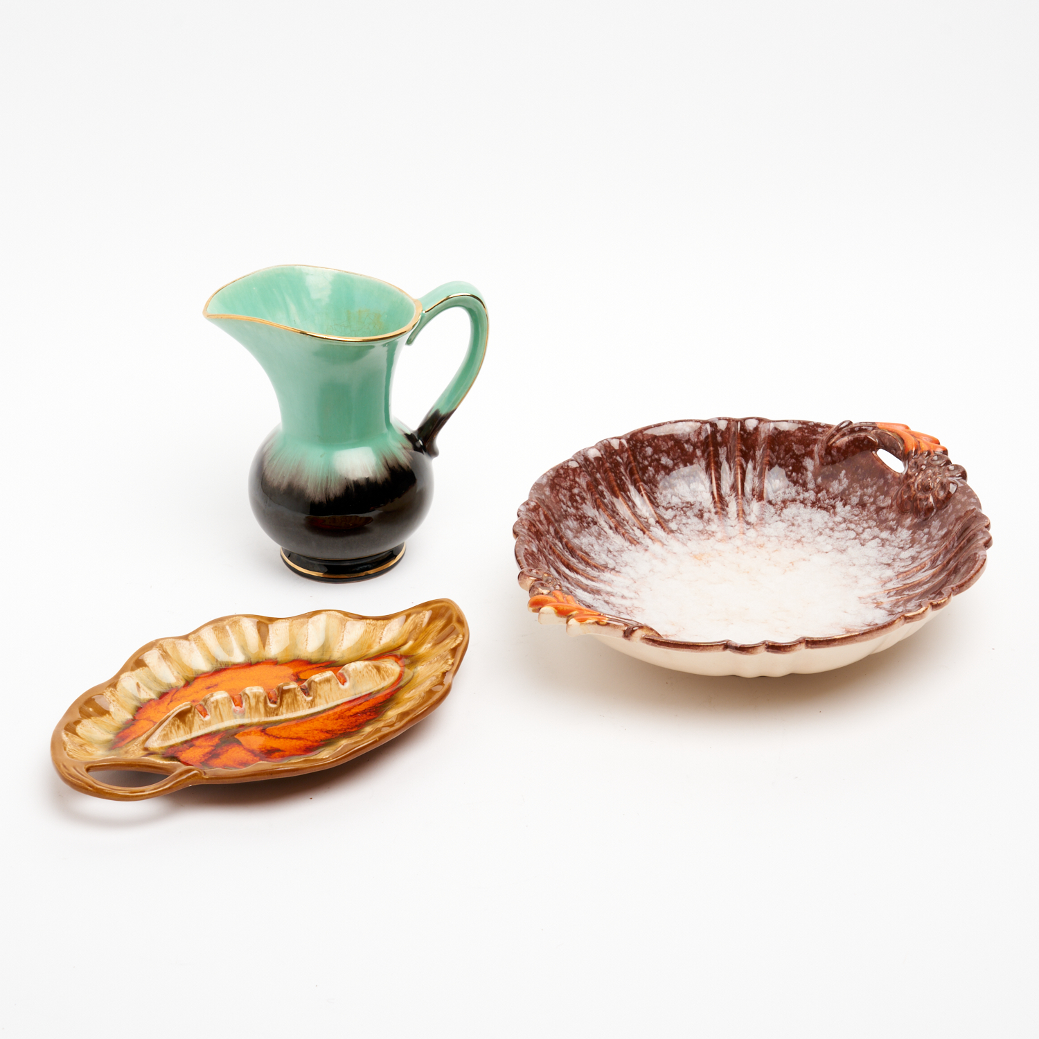 A COLLECTION OF CERAMIC TABLEWARE INCLUDING A WEST GERMAN VASE AND PLATTER L.31CM (LARGEST)