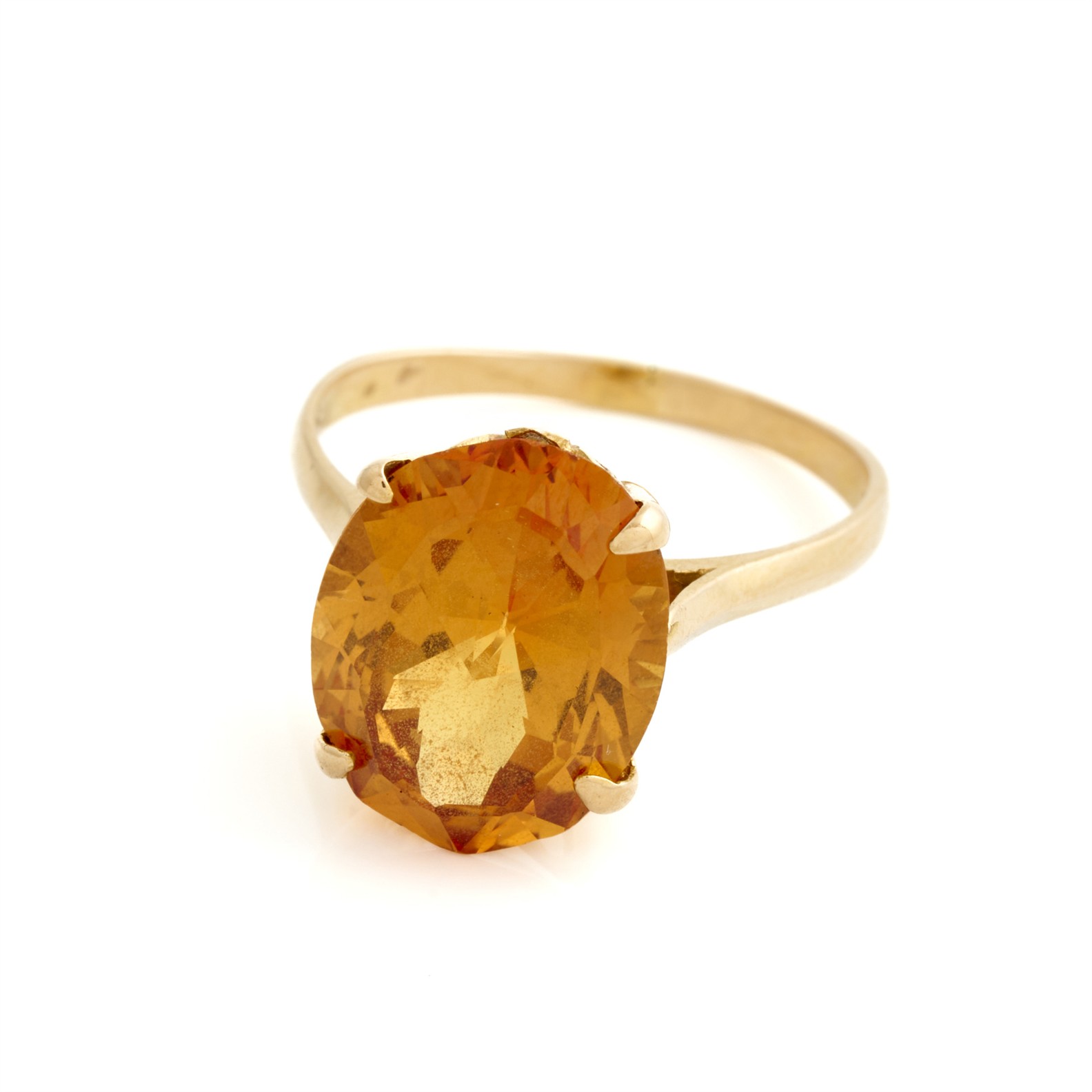 A SYNTHETIC STONE RING IN 9CT GOLD, SIZE O, 4.04GMS