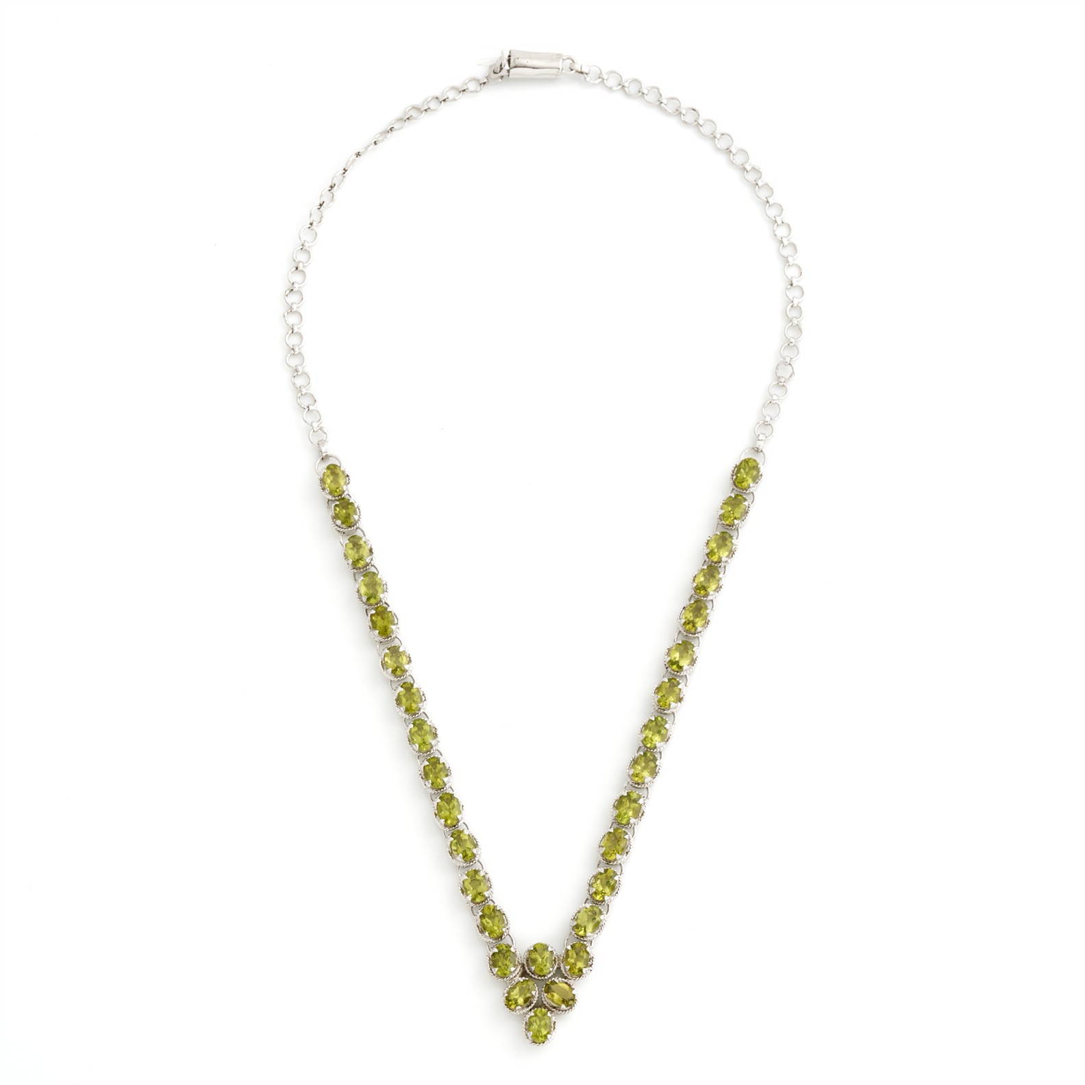 A PERIDOT SET NECKLACE IN SILVER, LENGTH 420MM