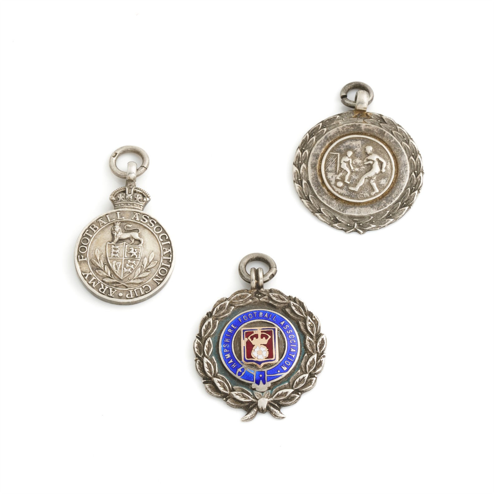 A TRIO OF MEDALLIONS IN STERLING SILVER, ONE ENAMELLED, THE LARGEST MEASURING 30MM