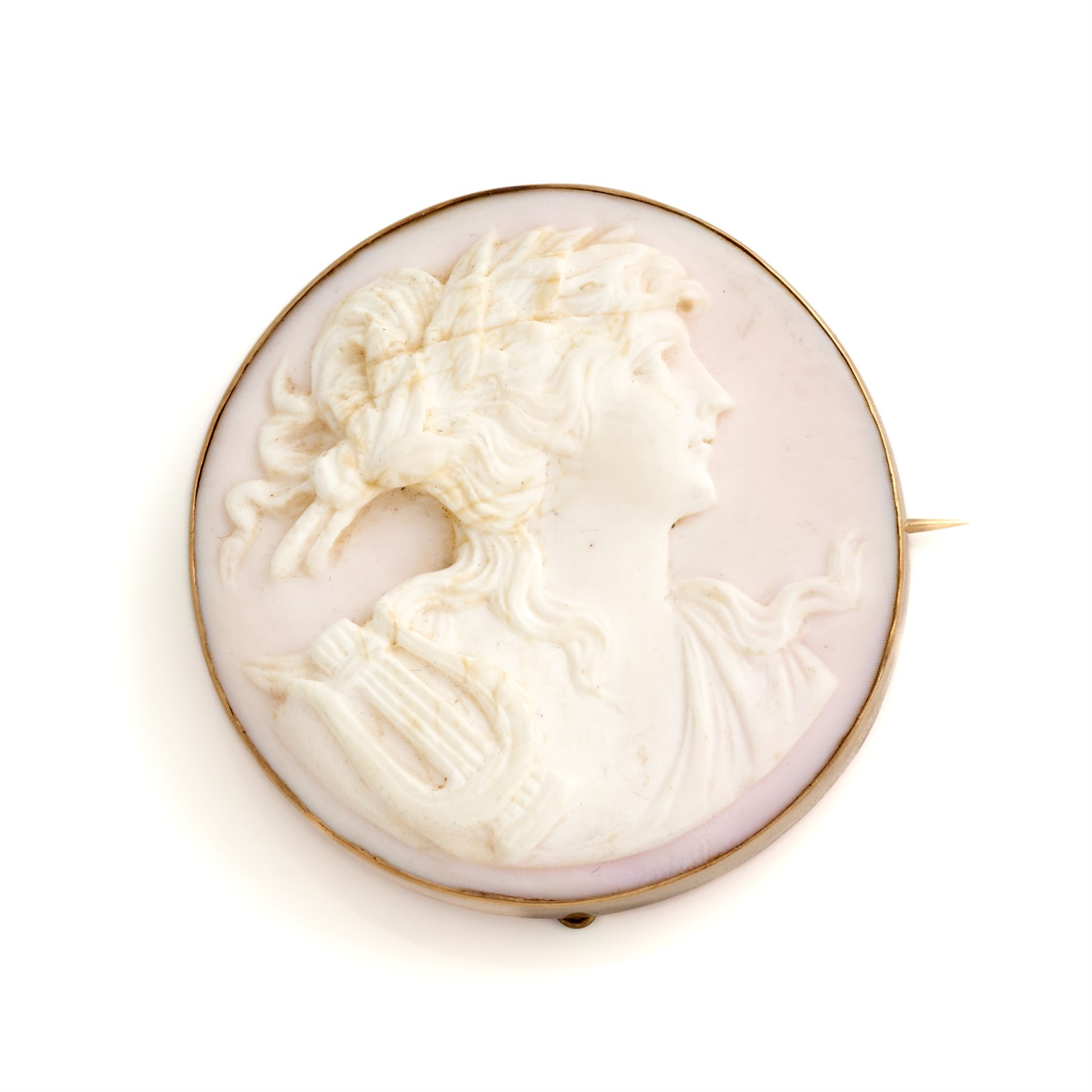 A QUEEN CONCH CAMEO SET IN 9CT GOLD, DIAMETER 48MM, 22.44GMS