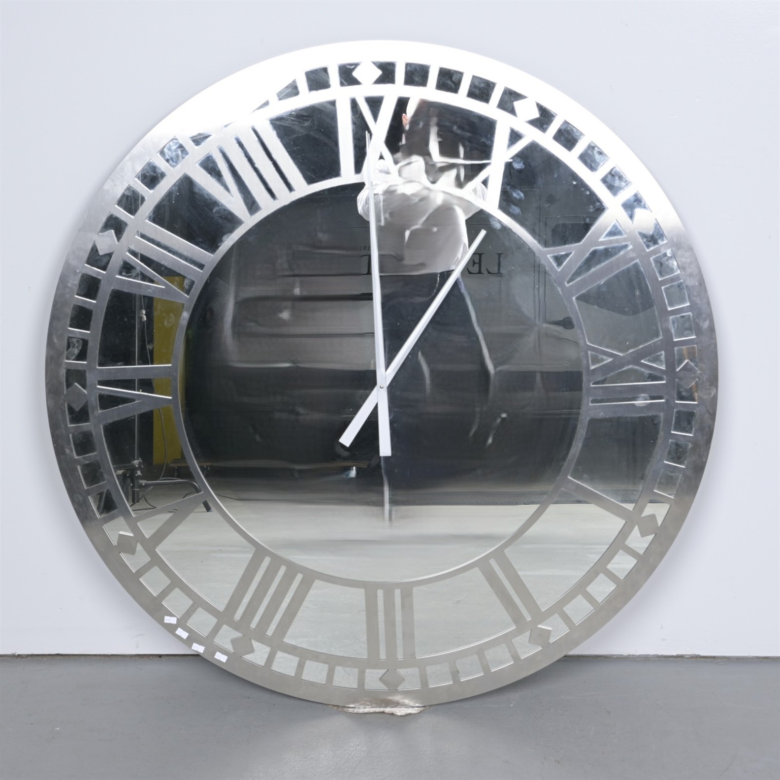 A LARGE MIRROR-BACKED CLOCK (120DIA CM)(THIS ITEM MUST BE REMOVED BY THE CUSTOMER OR CARRIERS AT THE CUSTOMER'S EXPENSE. LEONARD JOEL STAFF CANNOT ASSIST CARRYING THIS ITEM)