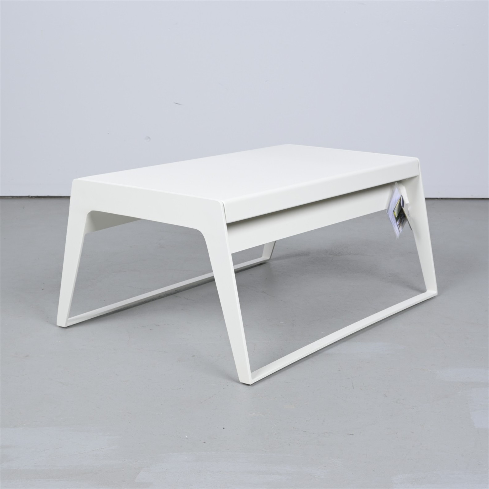 A POWDERCOATED ALUMINIUM COFFEE TABLE BY CANELINE, ADJUSTABLE IN HEIGHT (41H X 90W X 66D CM)
