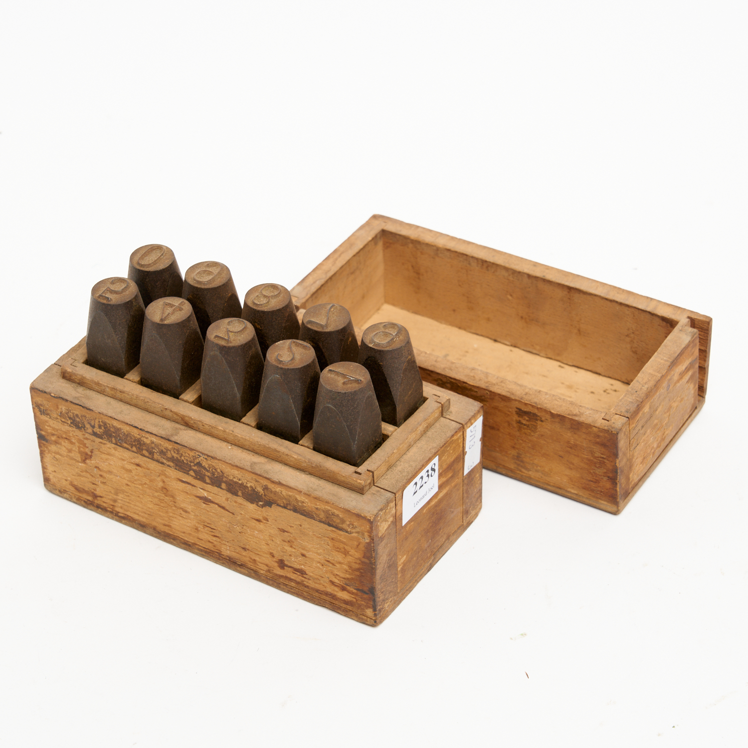 A VINTAGE SET OF 10 NUMBER STAMPS ITC, MADE IN ENGLAND WITH ORIGINAL BOX