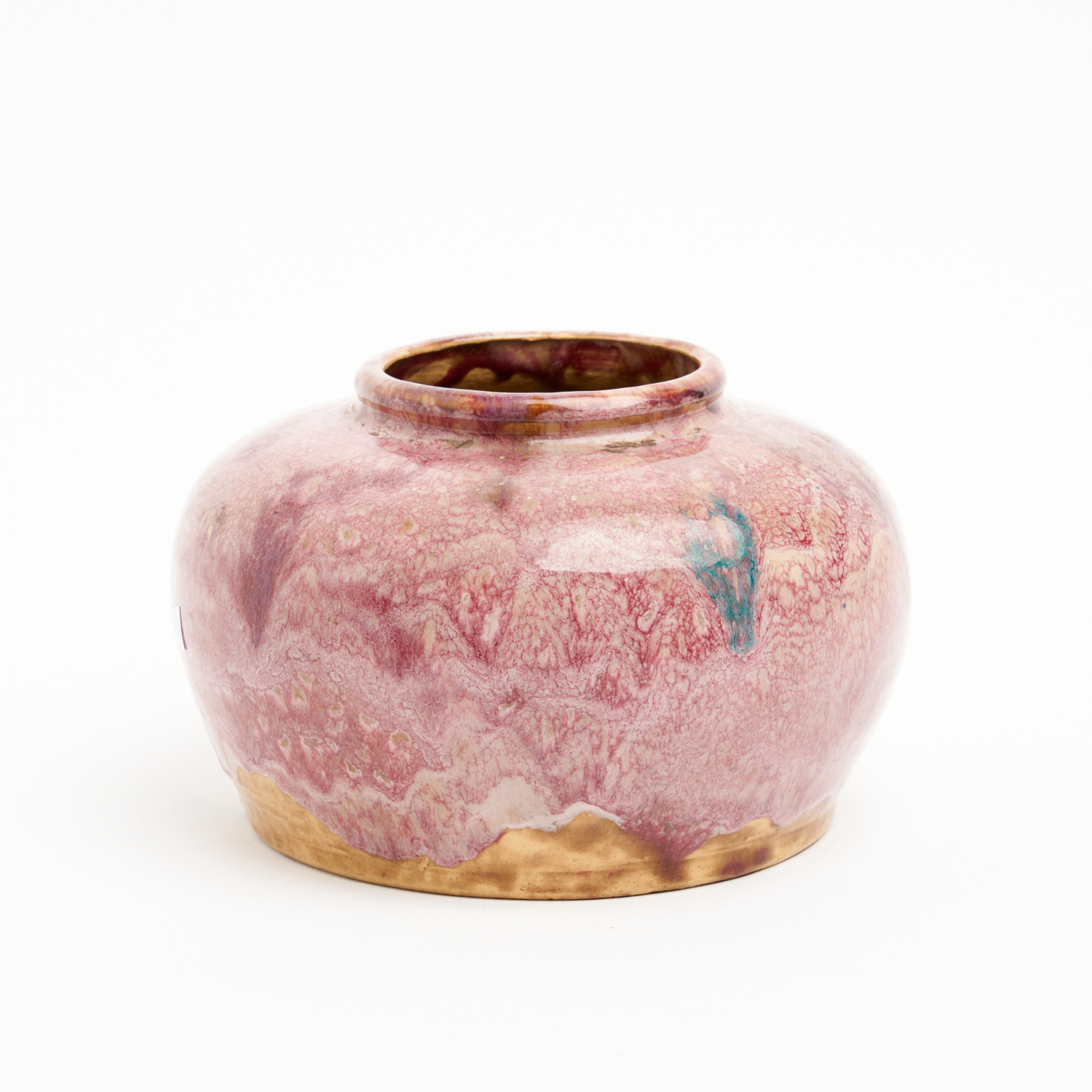 A MAUVE DRIP GLAZED ALISON DAVIDSON POTTERY VASE DIA.19CM