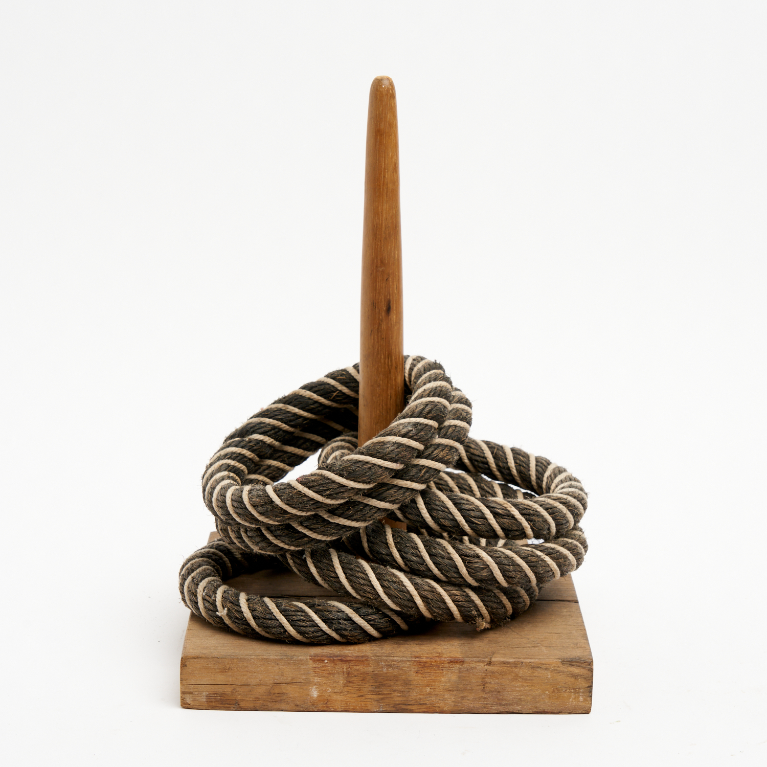 A SET OF VINTAGE QUOITS WITH SIX ORIGINAL RINGS H.36CM