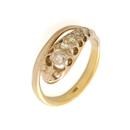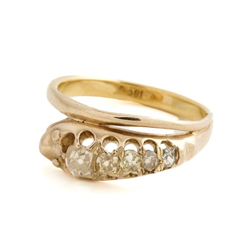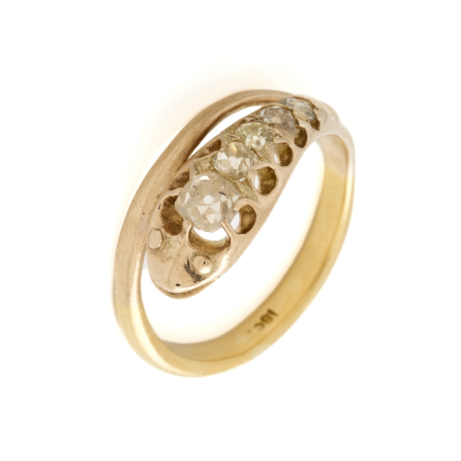 AN OLD CUT DIAMOND SNAKE MOTIF RING IN 18CT GOLD, SIZE P, 4.46GMS