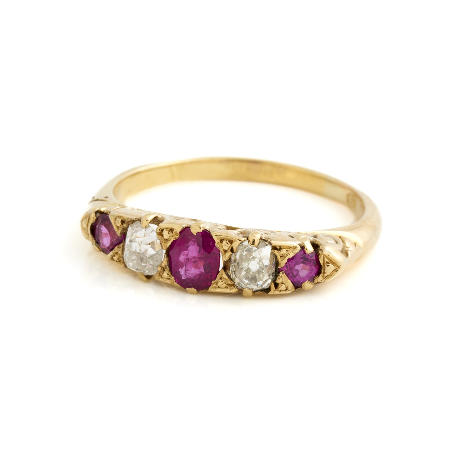 A DIAMOND AND RUBY RING IN 18CT GOLD, SIZE R 1/2, 3.95GMS