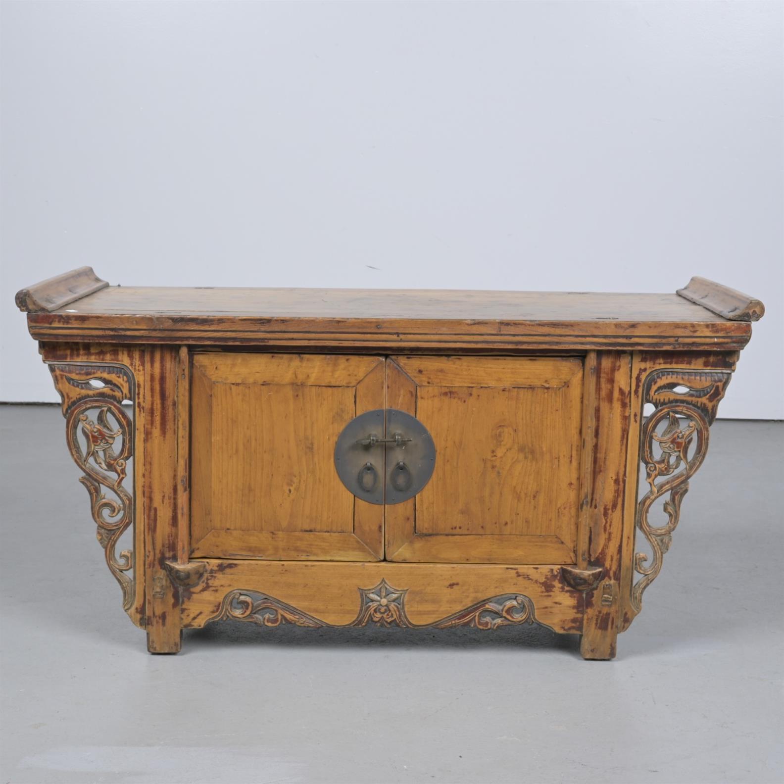 A CHINESE ELM LOW SIDE CABINET (58H X 111W X 44D CM)(THIS ITEM MUST BE REMOVED BY THE CUSTOMER OR CARRIERS AT THE CUSTOMER'S EXPENSE. LEONARD JOEL STAFF CANNOT ASSIST CARRYING THIS ITEM)