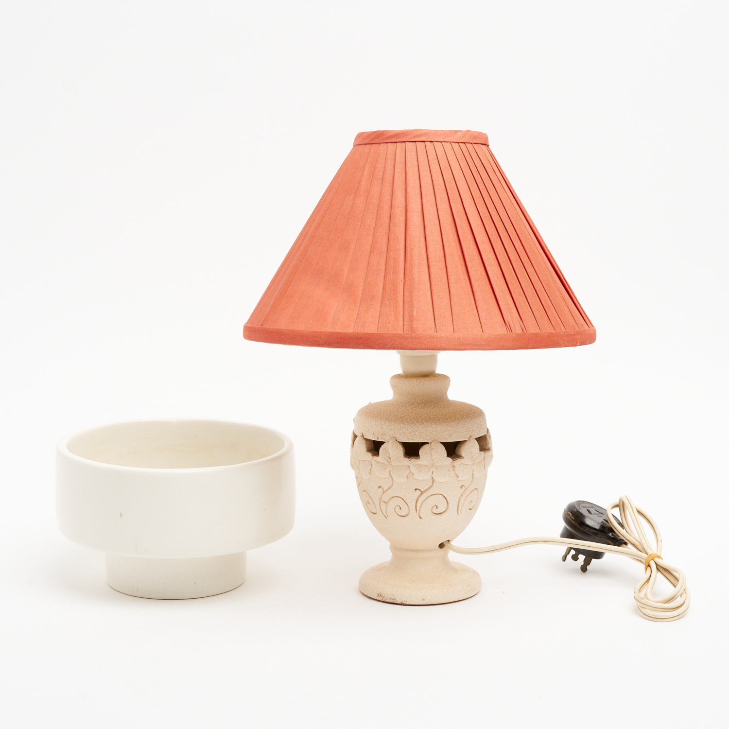 A HENNING RATHJAN ROUGH CAST LAMP WITH FLOWER BOWL DIA.18CM